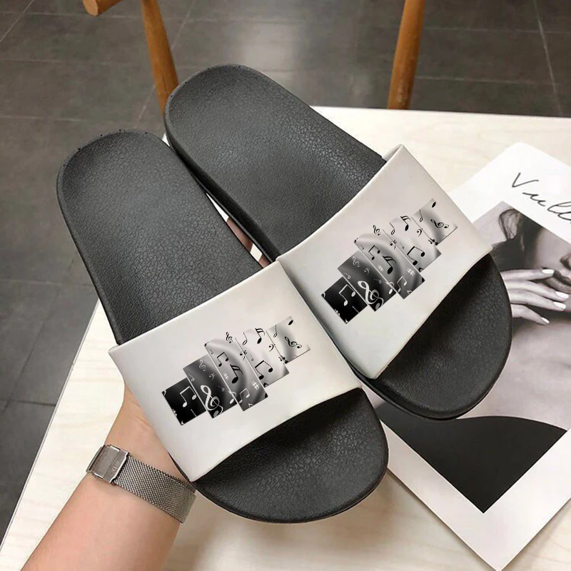 Шлепанцы женские с музыкальными нотами, пляжные сандалии, плоская подошва, Нескользящие, для дома, тапочки на заказ, летние