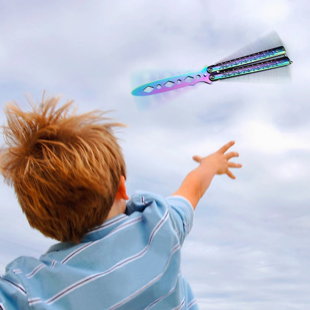 Портативный тренировочный нож с бабочками, складной тренировочный нож из легированной стали, тренировочная игра для тренировок на открытом воздухе, подаркиХарактеристика:Металл, устойчив к игре и падению.Стальной материал, более прочный и не легко сломать.Нет лезвия тупым ножом, безопаснее, нет опасности, не беспокойтесь.Легкий и легкий, технология полировки поверхности, металлическая текстура.Это только тренировочный нож, играющий в прохладу, не может резать вещи.Спецификация:Размер: длина: 21 см/8,27 дюйма (в разложенном виде), 9 см/3,54 дюйма (закрытый)Лезвие Толщина: 2,5 мм/0.1inМатериал: легированная стальЦвет: черный, серебристый, цветнойПримечание:В связи с различиями мониторов и эффектами освещения реальный цвет товара может немного отличаться от цвета на фотографиях. Спасибо!Возможны отклонения в 1-2 см вследствие измерений вручную.