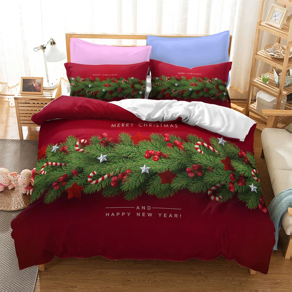Рождественский Комплект постельного белья с пододеяльником и наволочкой, одинарный, двойной, полноразмерный для детей и взрослых, украшение для спальни