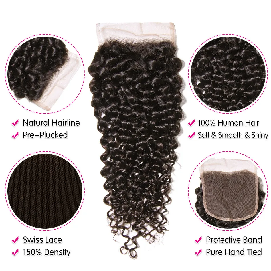 Волосы UNice вьющиеся человеческие волосы 3 пряди с Закрытие 4PCS б...