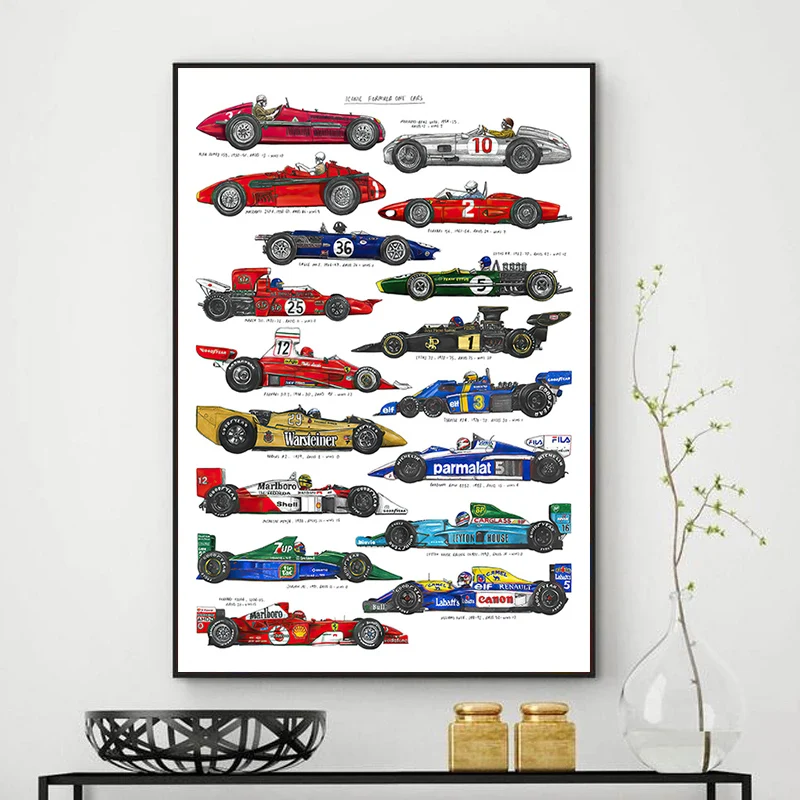 Винтажные картины на холсте Формула 1 гоночные автомобили чемпион мира водители Айртон Сенна постеры и принты для гостиной домашний декор