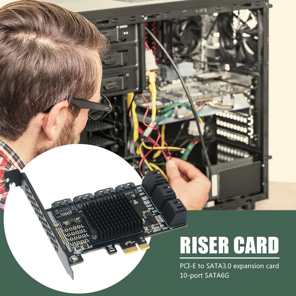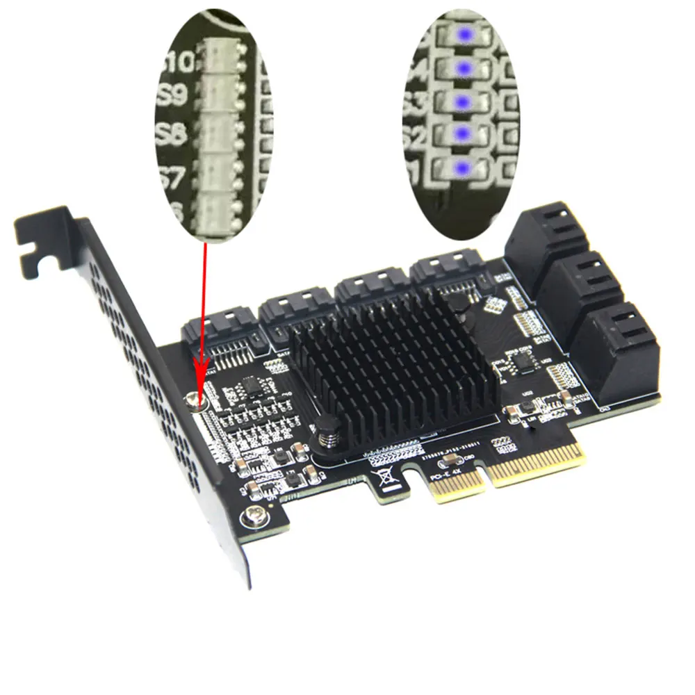 Райзер для майнинга Chi a, 10 портов, PCIE SATA, PCI Express SATA, контроллер PCIE на SATA 3, плата расширения PCI E X4 SATA3 6 Гбитс ASM1166