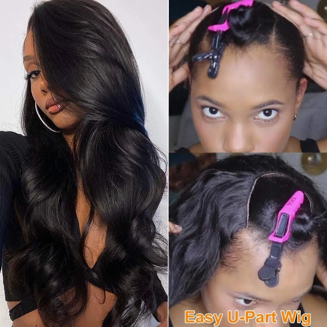 U-образный парик из натуральных волос, без гульки, с глубокой волно...