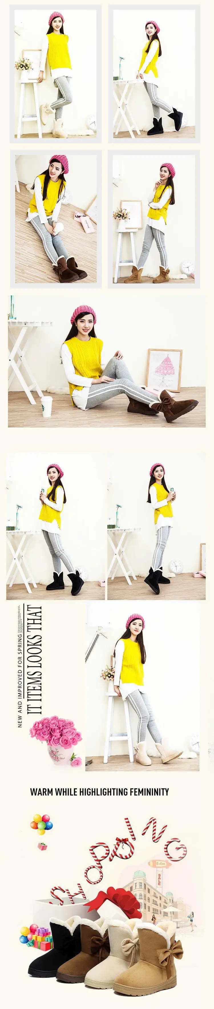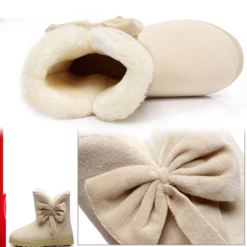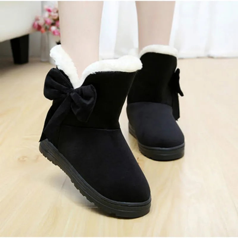 Женские зимние ботинки, зимняя обувь, теплая Повседневная обувь на меху, женские ботильоны с бантиком, Нескользящие плюшевые замшевые ботинки на плоской подошве, модная женская обувь, новинка