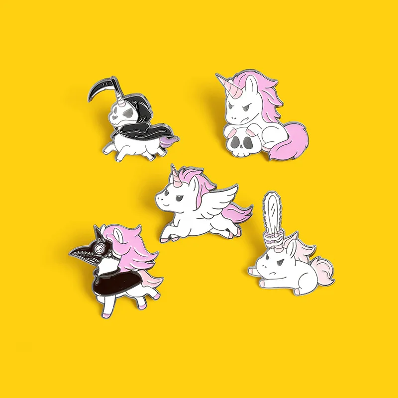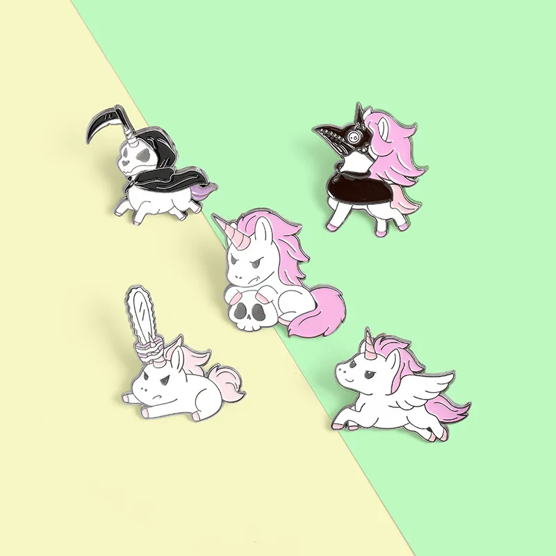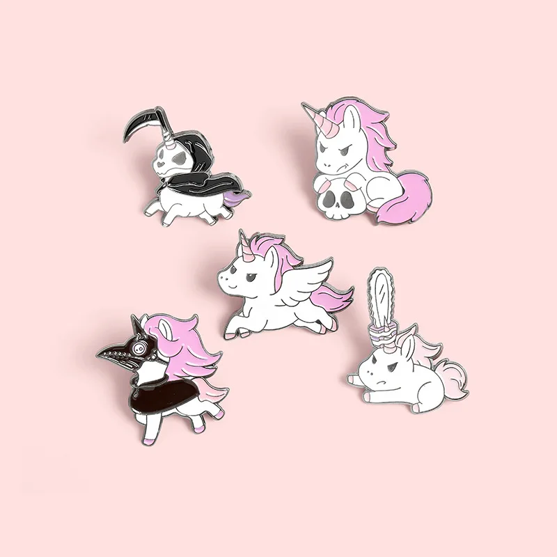 Розовый Единорог маленькое животное искусственное креативное огромное смешное череп пони значок для мужчин и женщин Сумочка ювелирное изделие