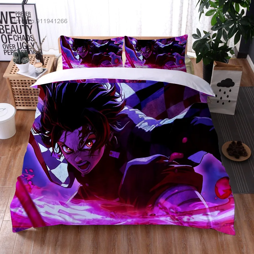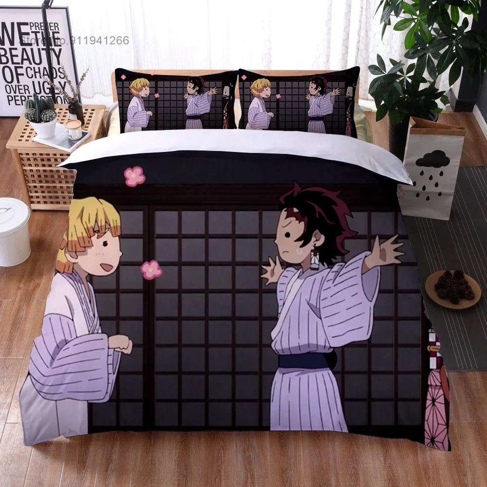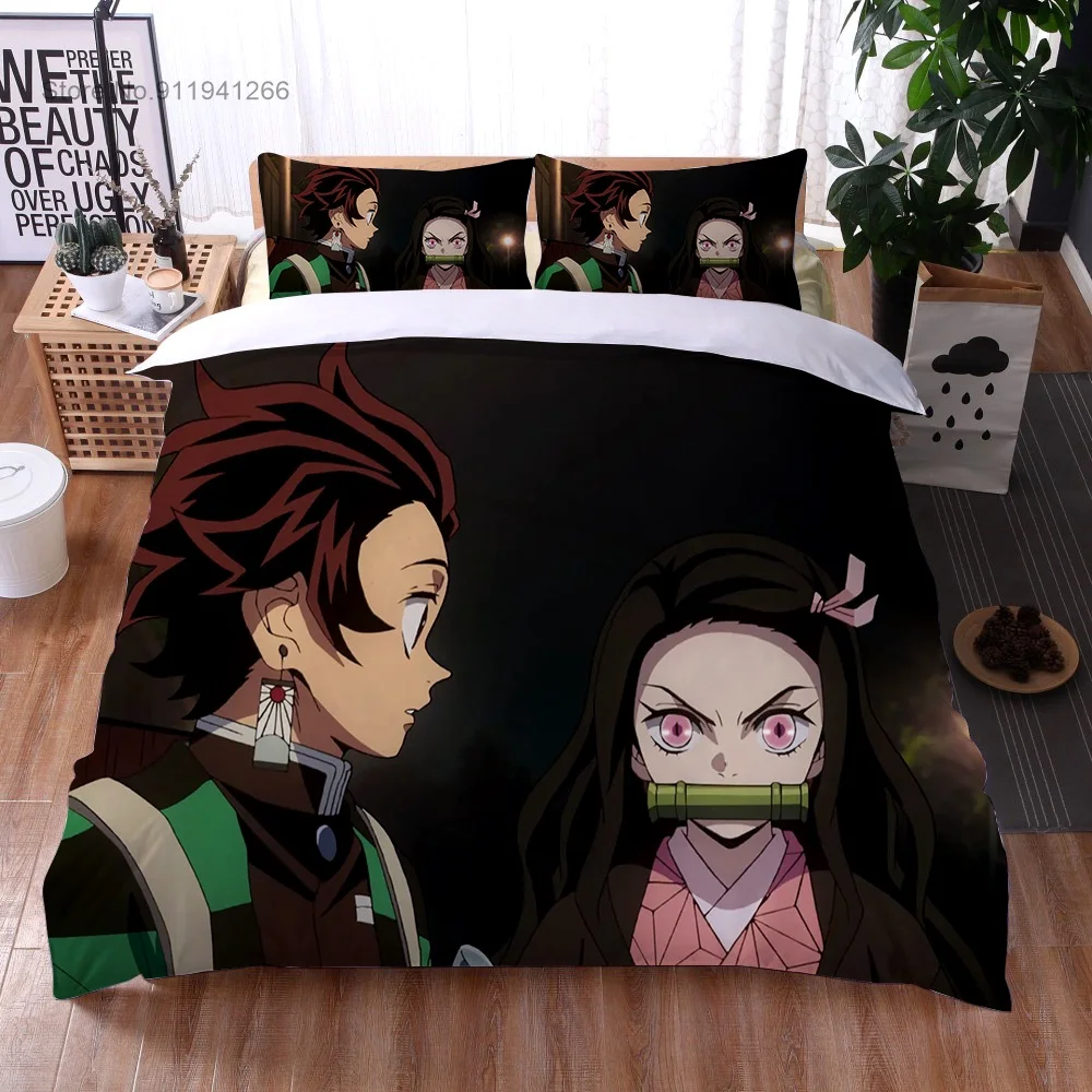 Комплект постельного белья из искусственного аниме, пододеяльник с рассекающим демонов 3D-принтом, японское мультяшное покрывало для кровати, наволочка (без простыней)
