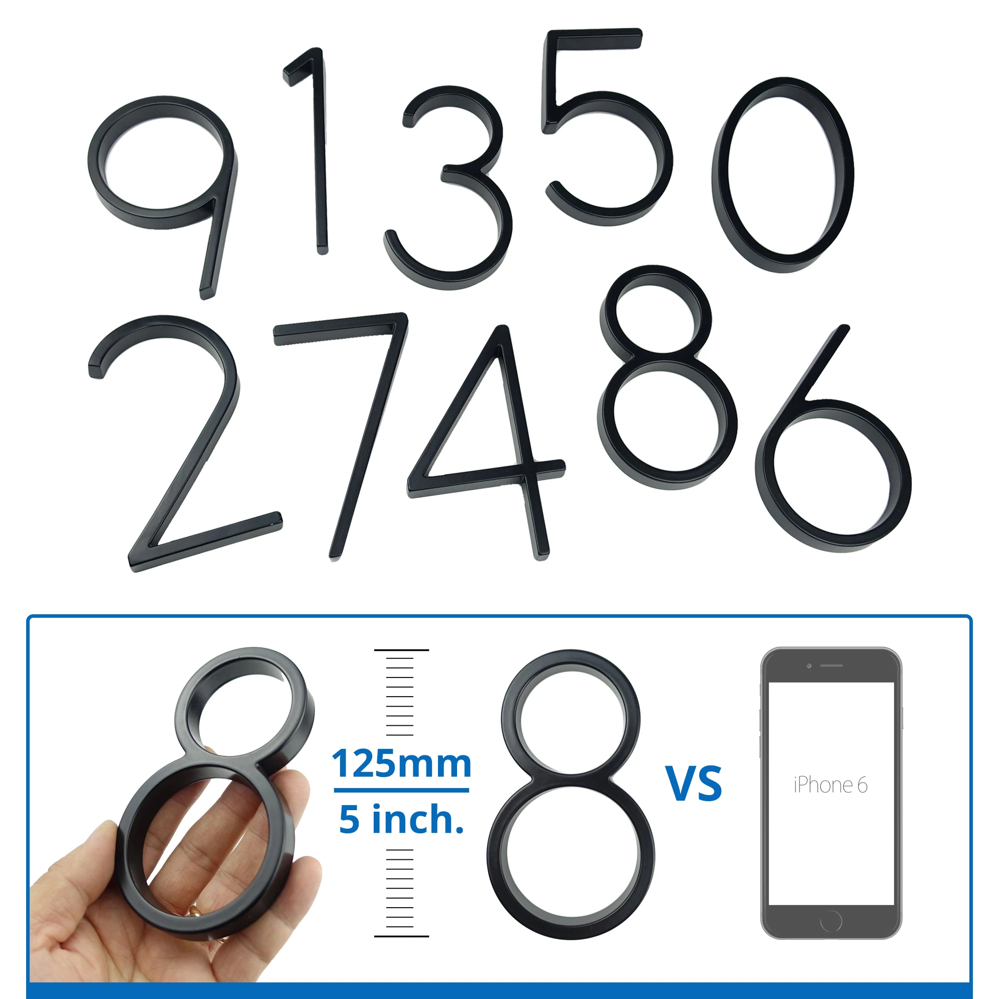 125 мм 0-9 плавающий номер дома, современный дом, дверь отеля, алфавит для дома и улицы, 5 дюймов, черные цифры, адрес, табличка, вывеска