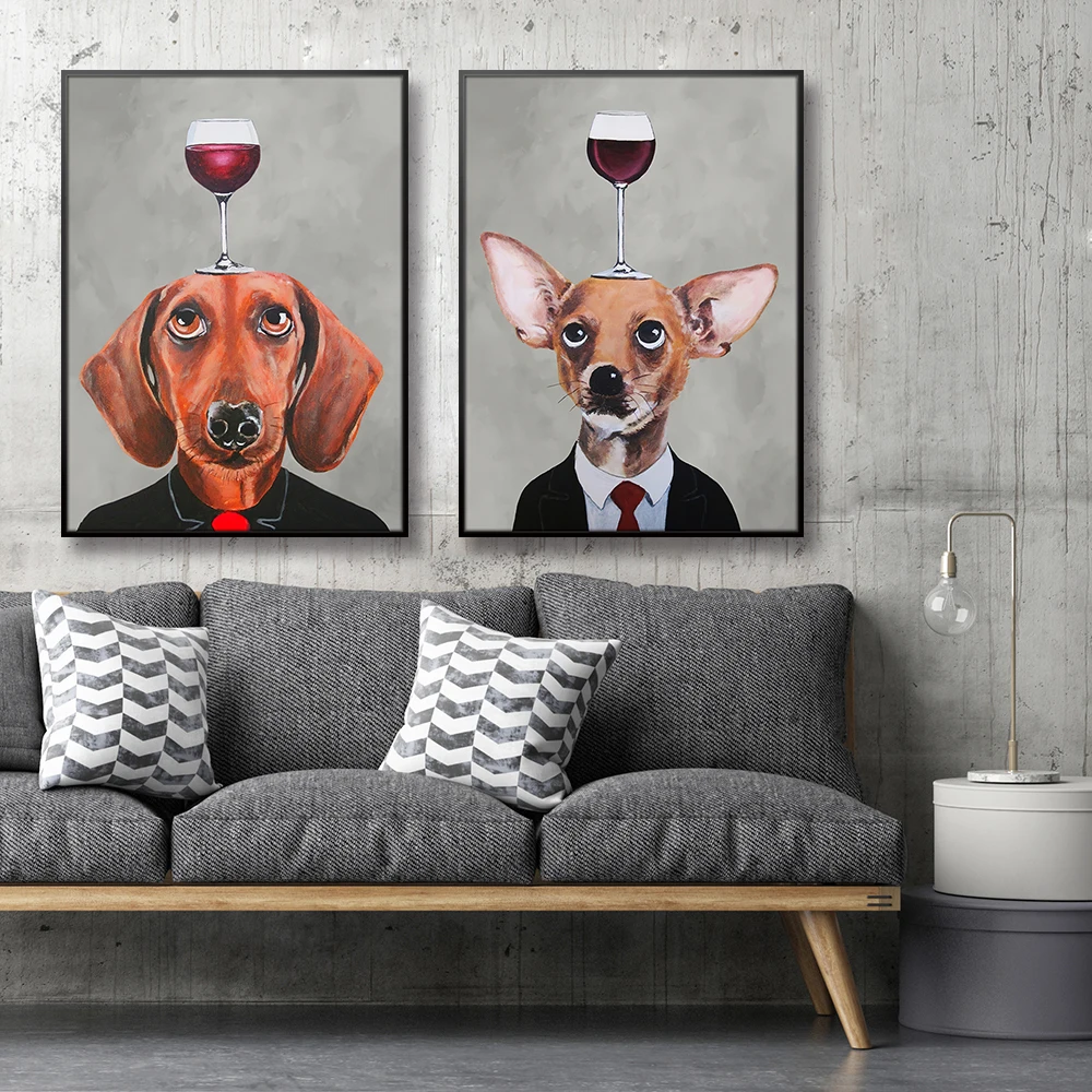 Милая кошка собака Парикмахерская Картина на холсте минималистическ...