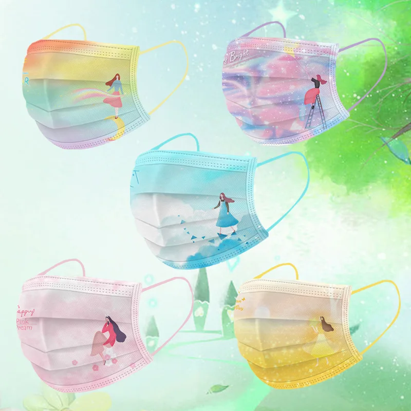 Маска одноразовая трехслойная для лица, дышащая Нетканая маска с принтом для взрослых и женщин, 50 шт.