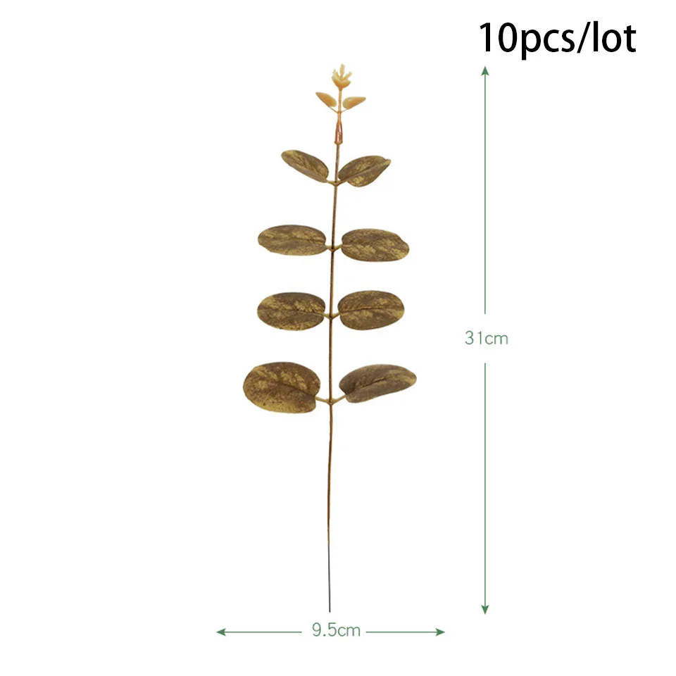 10 шт., искусственные зеленые листья эвкалипта, искусственные листья для рукоделия, венок для свадьбы, дня рождения, украшения для стола, двери