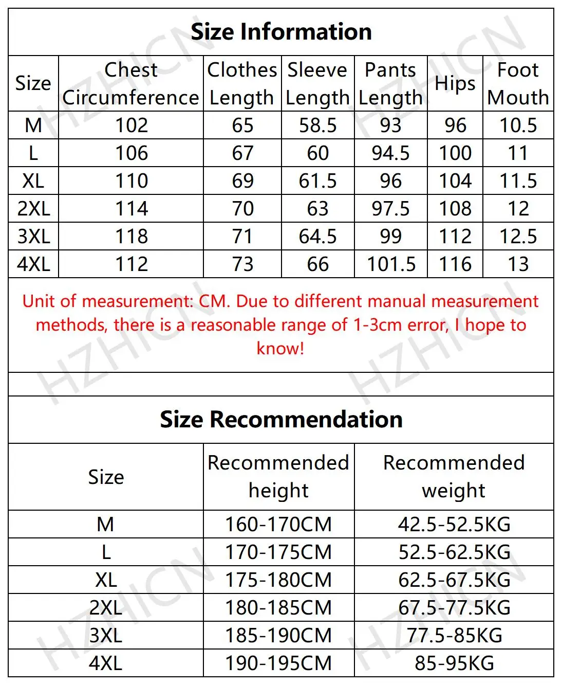 Единица измерения: см. Из-за различных методов ручного измерения допустима погрешность в 1-3 см. Надеемся на ваше понимание!