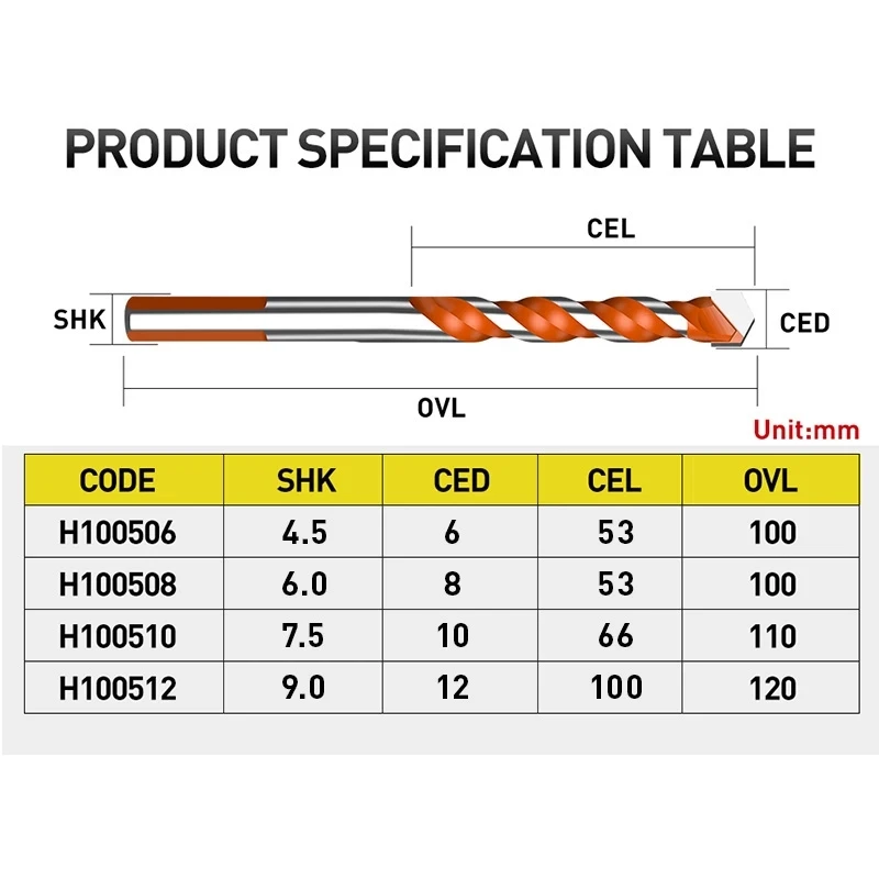 HUHAO 1 шт. спиральная сверлильная головка настенное керамическое стекло для пробивки отверстий многофункциональное сверло 6 мм 8 мм 10 мм 12 мм сверло s
