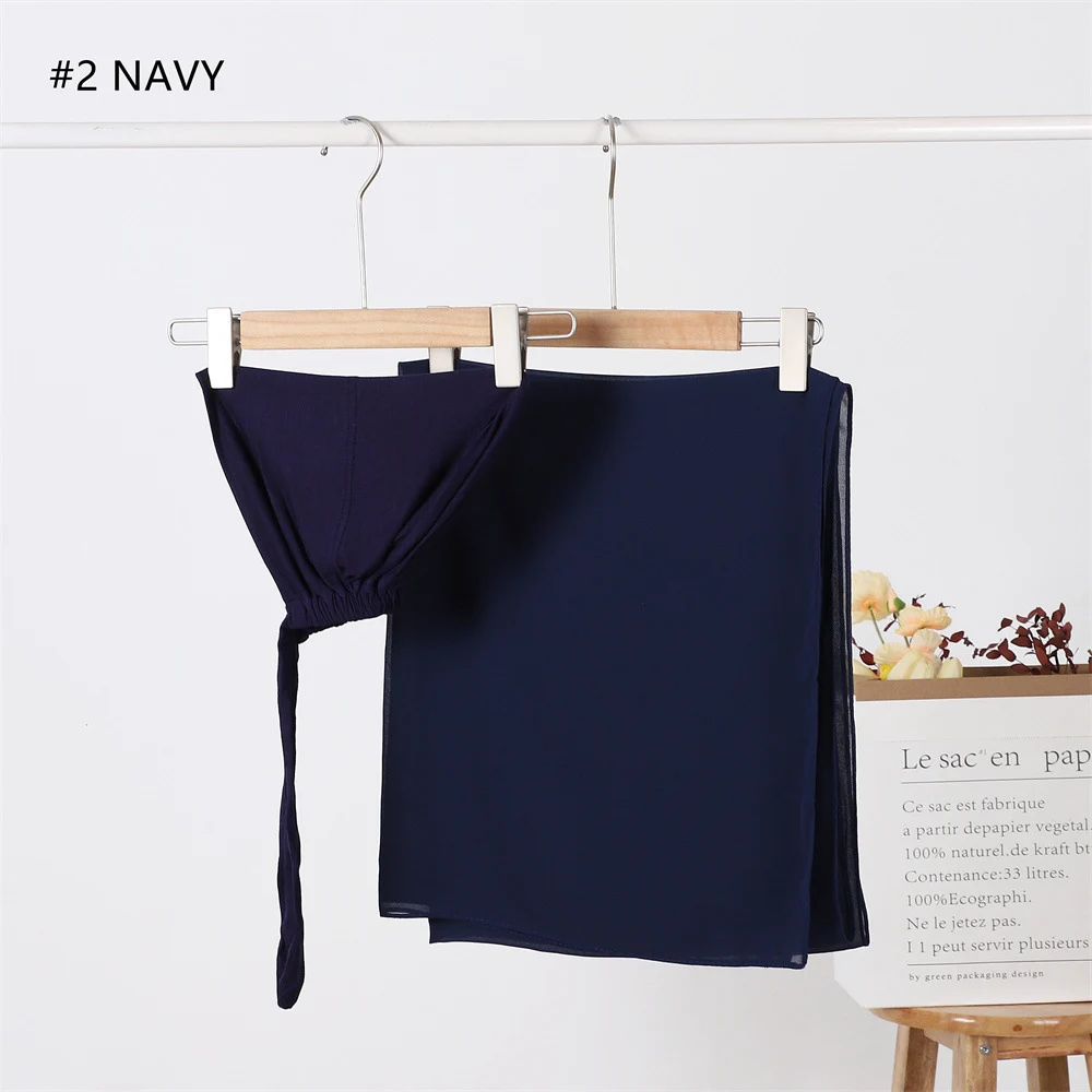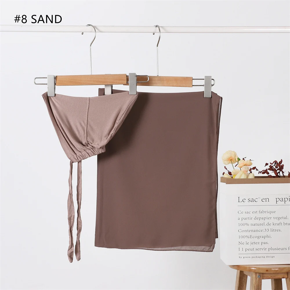 Шарф шифоновая шаль с трикотажным нижним шарфом комплект из 2 предметов хиджаб с шапочкой Прикрепленный шифоновый хиджаб с подсветкой внутренний ислам