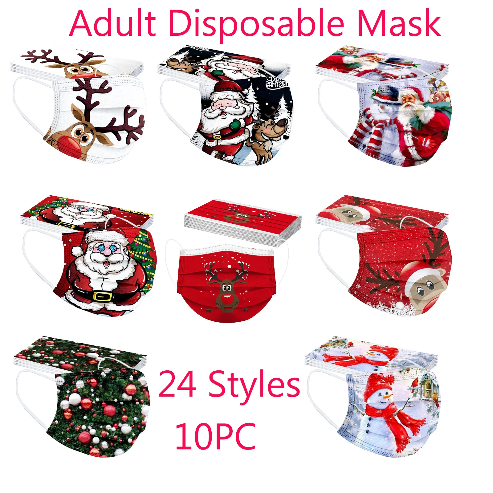 Маска для косплея, одноразовая маска для лица для взрослых, новый год 2022, Рождество, Санта, Рождество, печатные 3-слойные маски с ушными петлями, тушь для ресниц