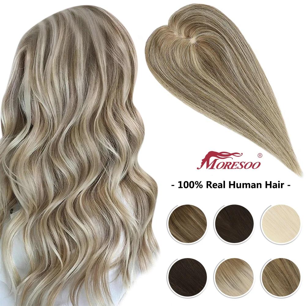 Топперы для волос Moresoo, 100% натуральные человеческие волосы на заколке, кусок волос для женщин, естественная прямая машина, волосы без повреждений, моно и топ из ПУ