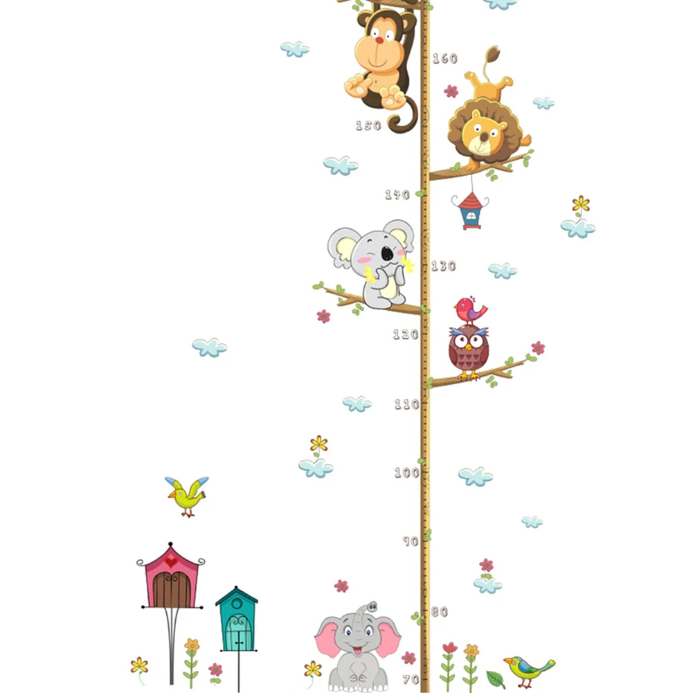 Мультяшные животные Лев Обезьяна Сова Слон измерение высоты Настенная Наклейка для детской комнаты Таблица роста декор для детской комнаты настенное искусство
