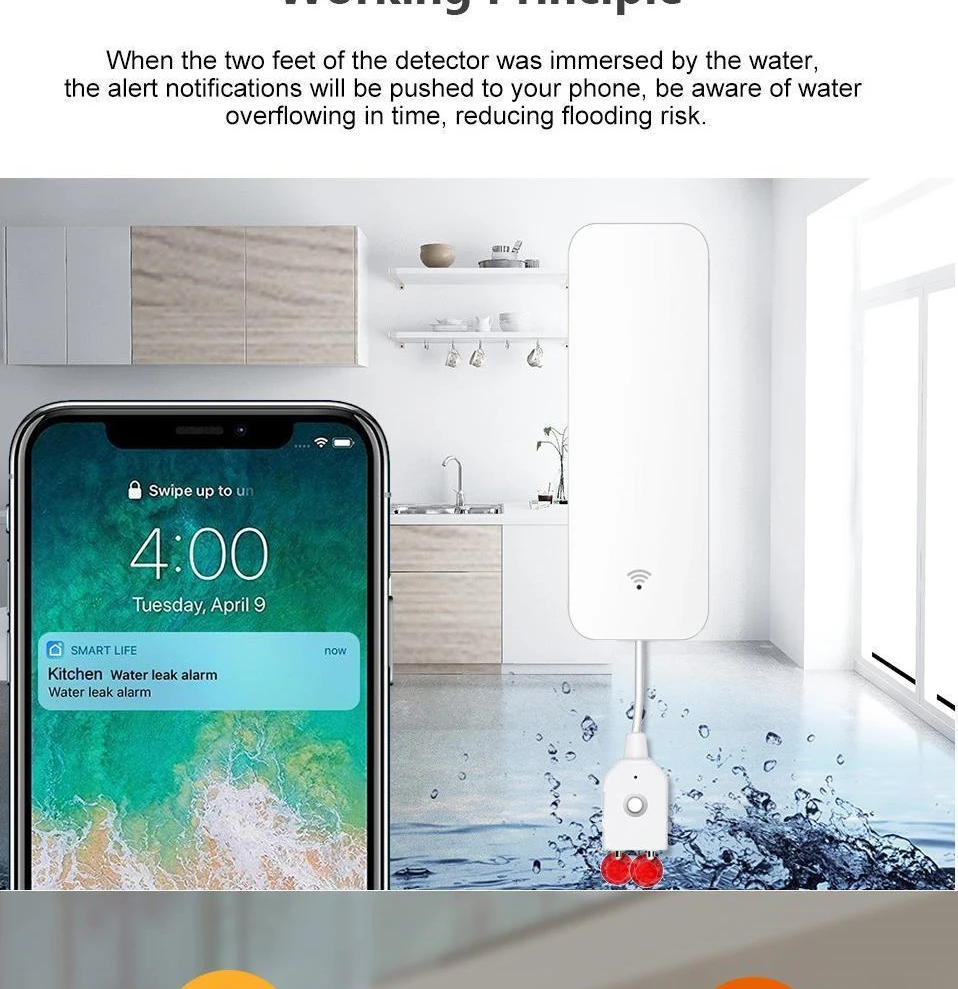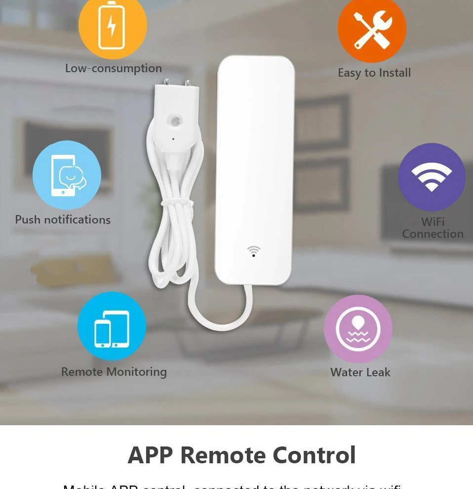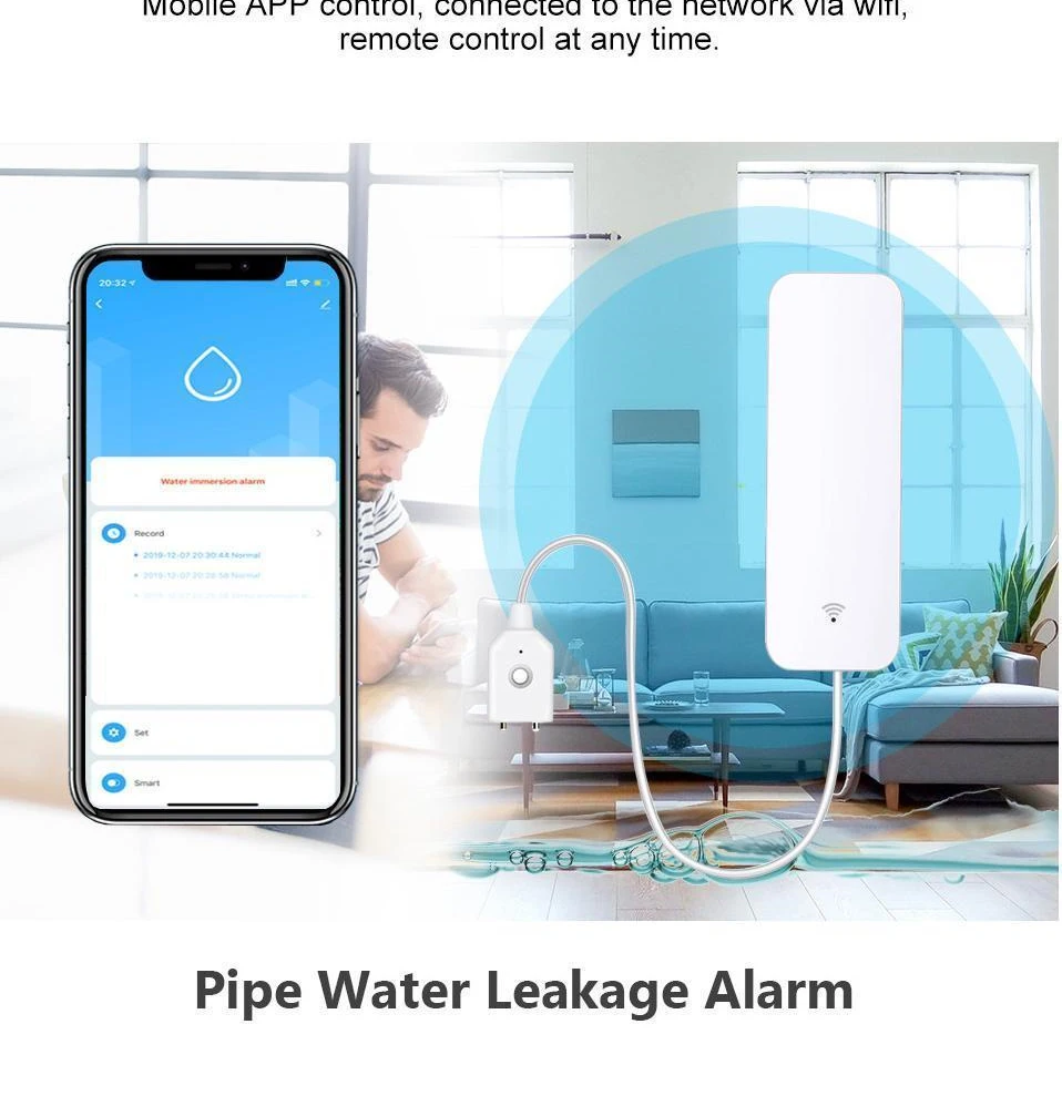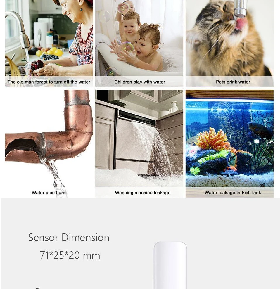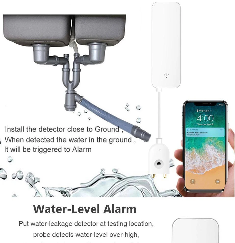Название: домашняя сигнализация Tuya, Сигнализация утечки воды, независимый Wi-Fi датчик утечки воды, детектор наводнения, система охранной сигнализации, без ступицы Батарея: LR03-1.5V/AAA * 2 (батарейки не входят в комплект) Беспроводной Тип: 2,4 ГГц IEEE 802.11b/g/n Рабочая температура: 0 ℃ ~ 40 ℃ (32 ℉ ~ 104 ℉) Рабочая влажность: 20% ~ 85% относительной влажности Влажность хранения: 0% ~ 90% относительной влажности Приложение: Tuya smart (поддерживает Android 4,4 и iOS 8,0 или более новый) Материал: АБС-пластик Особенности продукта: 1. Вода poof, обнаружение утечки воды Датчик может определить, есть ли утечка воды в месте установки. Если это обнаружится, информация будет немедленно передвинута на телефон. 2. Легко установить Установка датчика очень проста, вы можете использовать клей краны или винт (в комплекте) Набор для установки в месте, которое вам нужно установить, обратите внимание, что место установки может быть подключено к Wi-Fi роутеру .. 3. Используйте Wi-Fi, не требуется концентратор Датчик использует Wifi для передачи данных с сервера. Пока есть Wi-Fi сеть, подключенная к Интернету дома, она может соответствовать условиям установки. 4. Удаленный мониторинг Информация о сигнале тревоги и записи датчиков хранятся на сервере. Этот дизайн позволяет нам контролировать, есть ли вода в доме или офисе из любого места через смартфон. И также может поделиться контрольной информацией устройства с другими. 5. Низкое потребление батареи Потребляемая мощность датчика в режиме ожидания очень мала, и две батареи LR03 AAA используется для одного года. И когда обнаружится, что батарея низкая, она напомнит вам заменить батарею через сообщение тревоги.