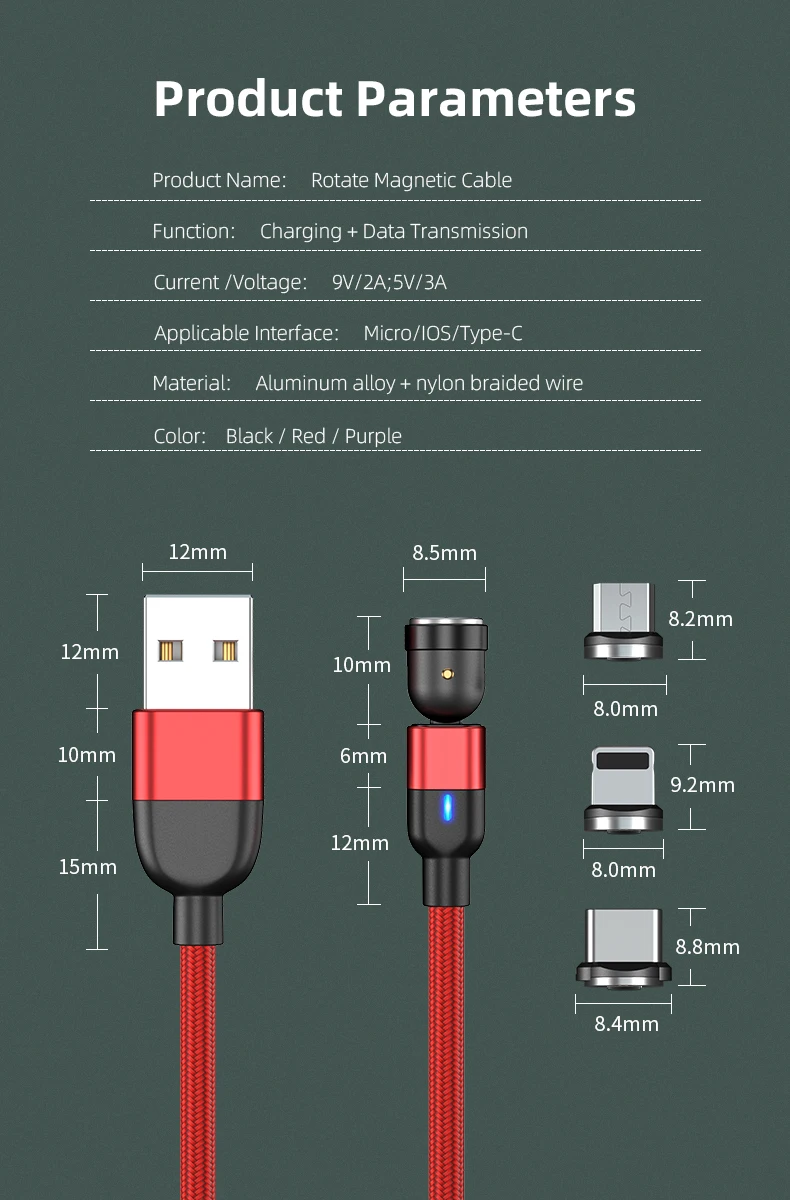 Вращающийся на 540 градусов Магнитный кабель CQXSMAX, магнитное зар...