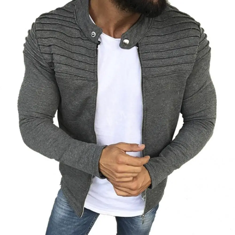 Мужская плиссированная куртка на молнии, однотонный кардиган на каж...