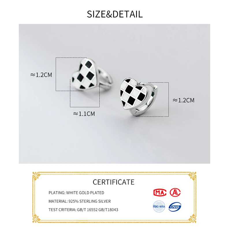 Женские серьги-кольца из серебра 925 пробы, в черно-белую клетку