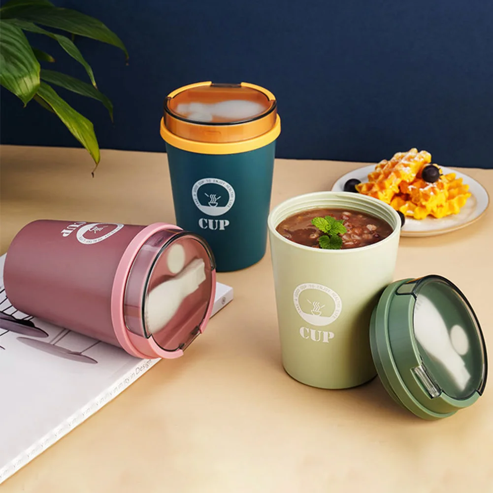 Портативная чашка для завтрака с крышкой и ложкой, можно использова...