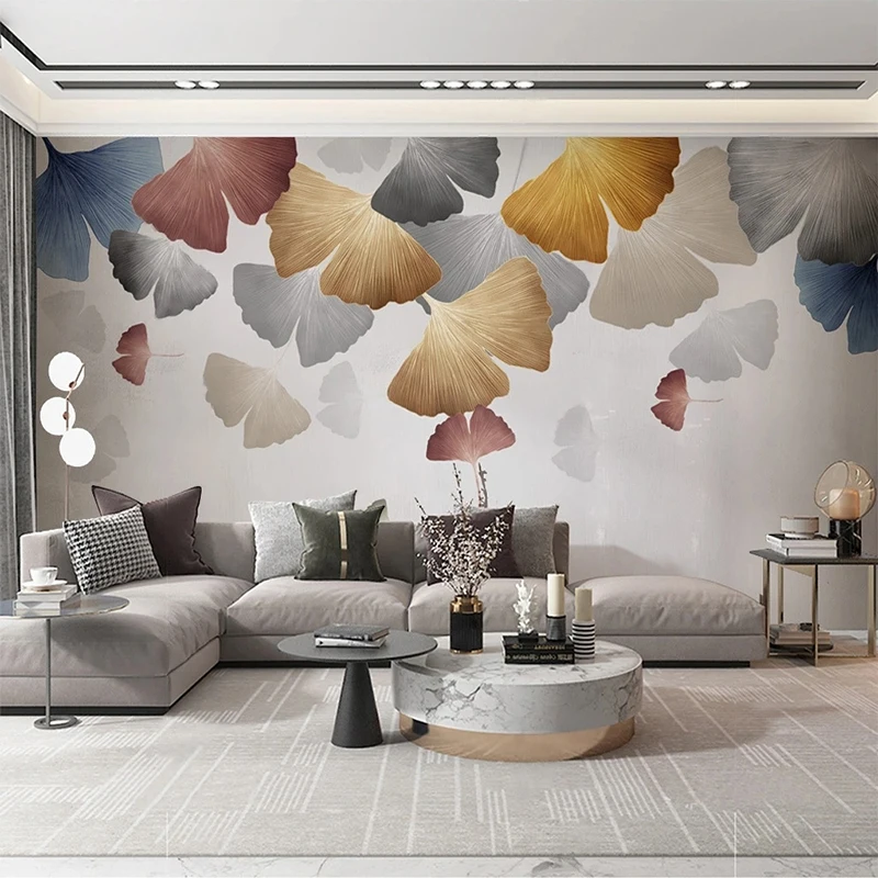 Пользовательские 3D фото обои абстрактные линии дым Золотые листья ...