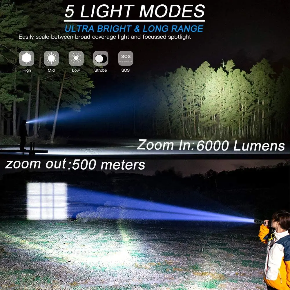 Ффонарь XHP160, 10000 мА ч светодиодный 5 режимов, перезаряжаемый ...