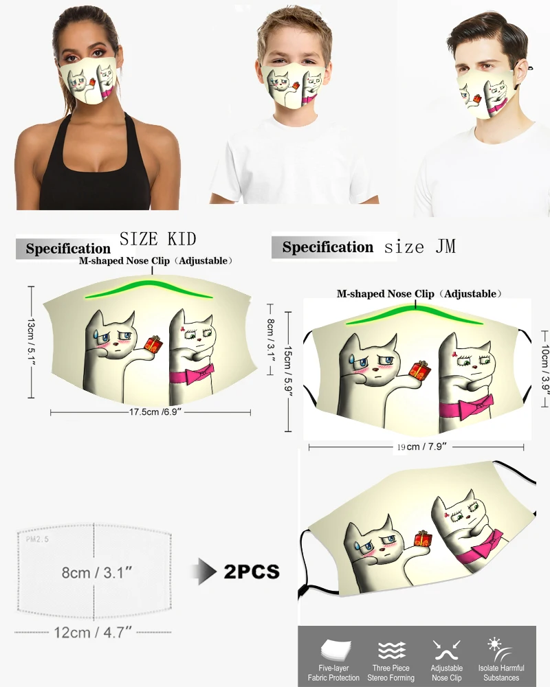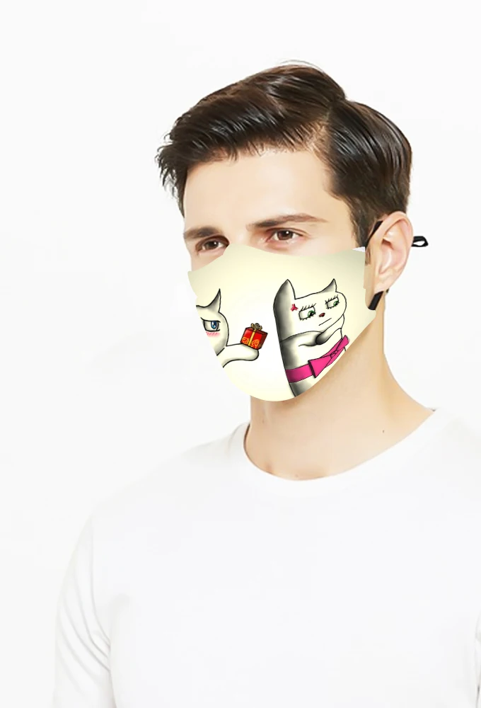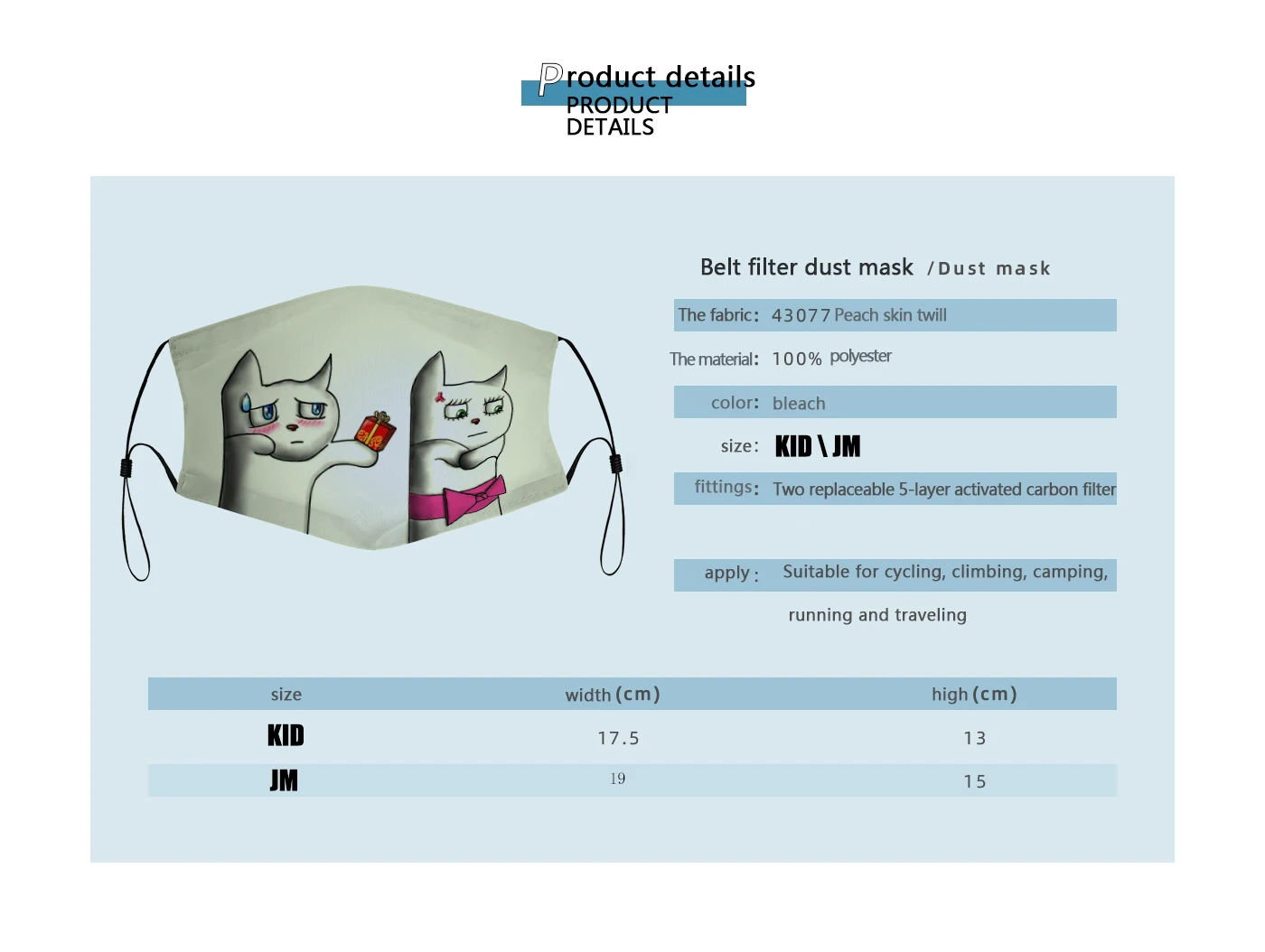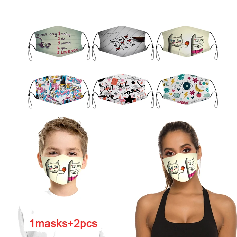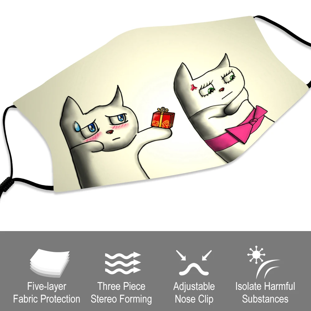Забавная маска с мультяшным котом, маска для детей, маска с 3D принтом, модная моющаяся многоразовая маска для взрослых, пылезащитная уличная маска с фильтром и ремнем