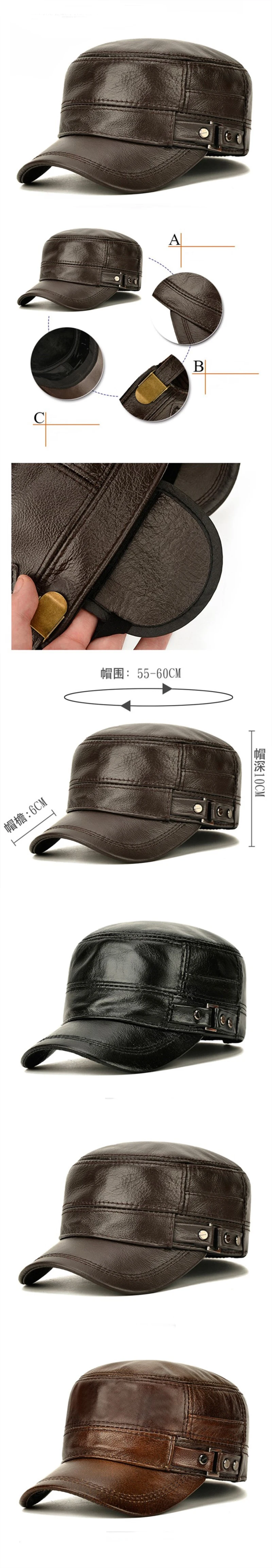 Кепка мужская из натуральной воловьей кожи, Теплый головной убор в стиле милитари, брендовая бейсболка регулируемого размера, Осень-зима
