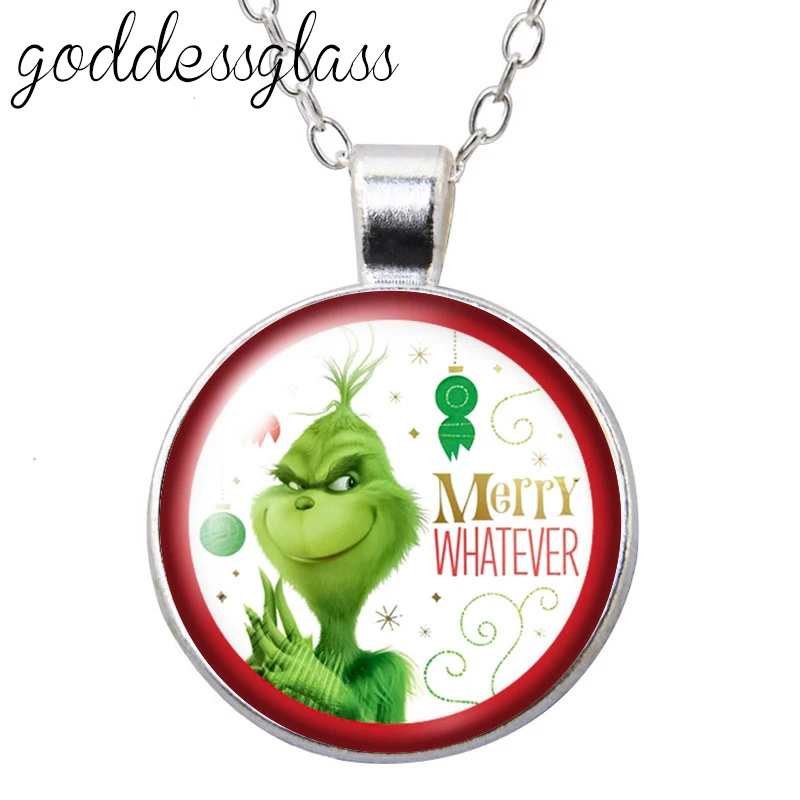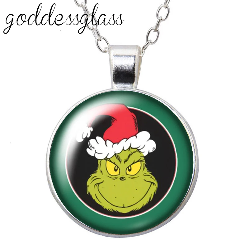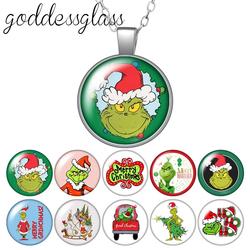 Рождественский круглый стеклянный кабошон, посеребренныйхрустальный кулон, ожерелье, ювелирные изделия, подарок, новинка