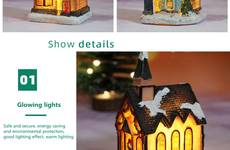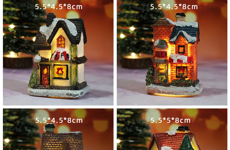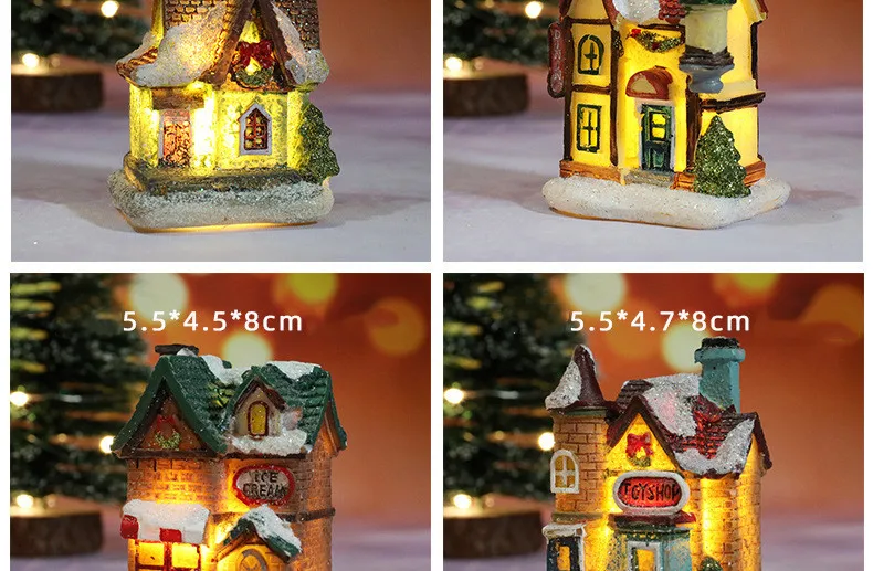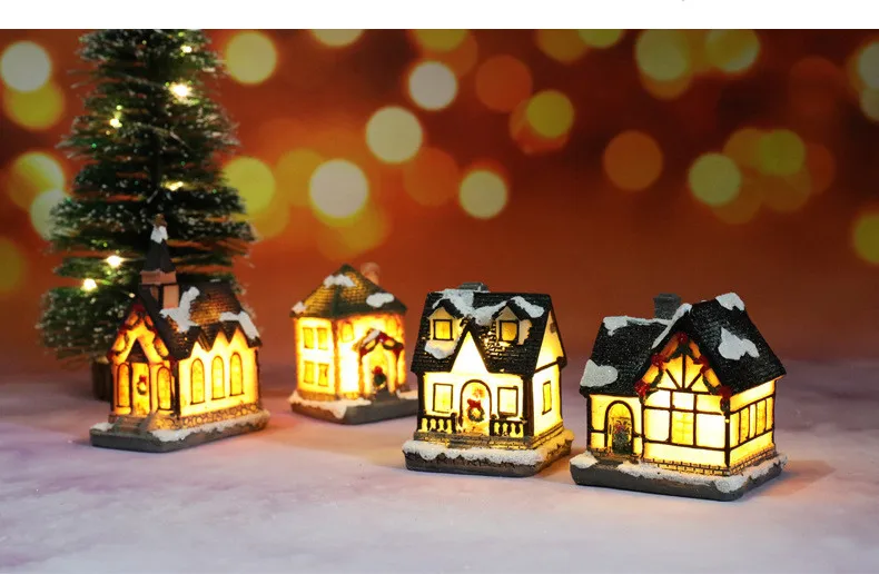 Рождественский домик, светящиеся фигурки деревни из смолы, миниатюр...