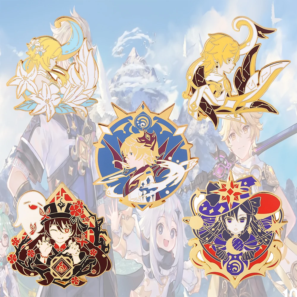 Брошь Game Genshin Impact значки THOMA Keqing HuTao Raiden Shogun фигурки эмалированные булавки броши для фанатов косплей подарок лацкан сумка Ювелирные изделия