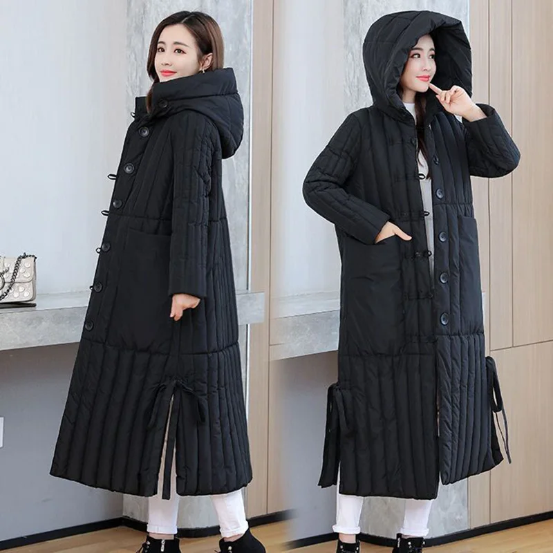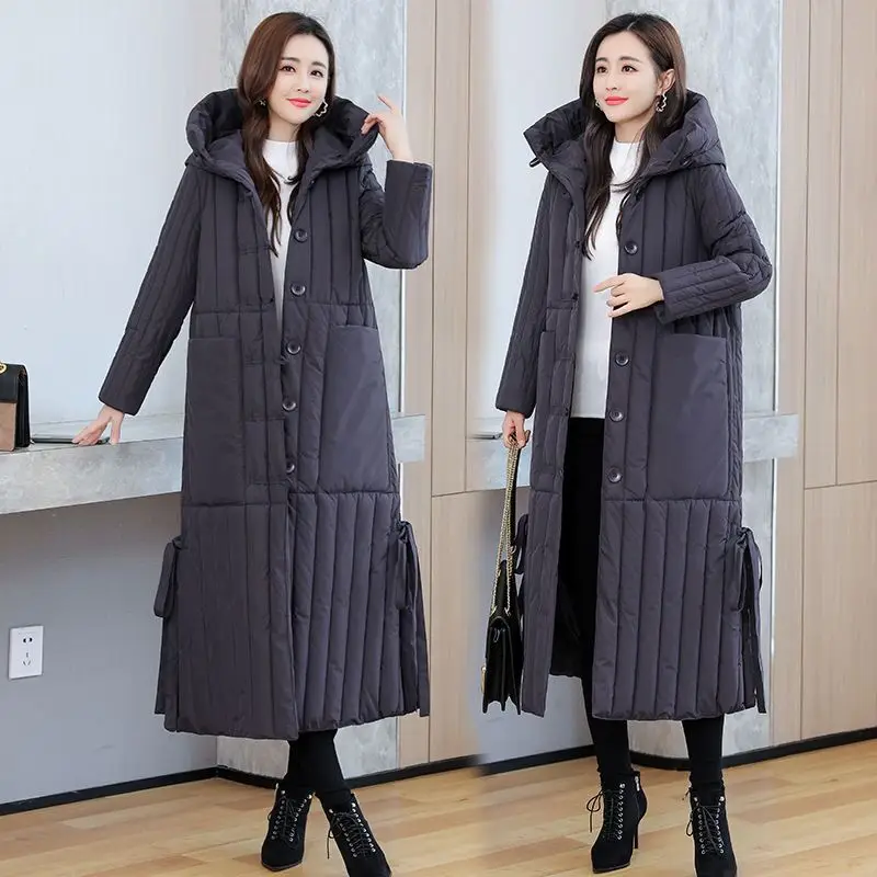 Модная парка, длинное зимнее пальто большого размера, Женская Толстая теплая хлопковая куртка с капюшоном, Женская однобортная Свободная куртка большого размера 3XL