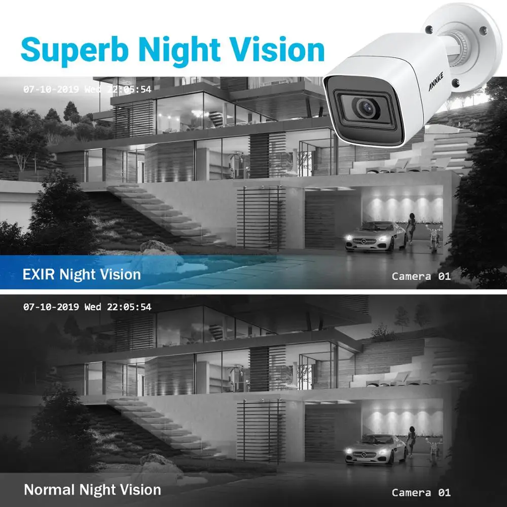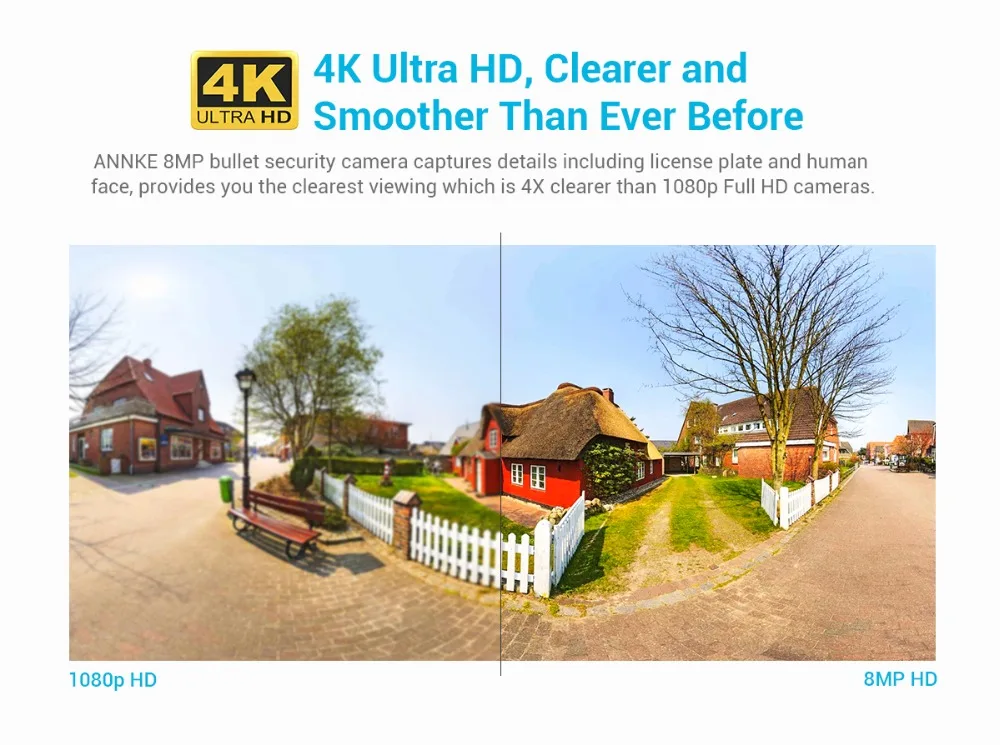 Камера Безопасности ANNKE 8MP bullet захватывает детали, включая номерной знак и человеческое лицо, предоставляет вам самый Четкий просмотр, который на 4X четче, чем камеры Full HD 1080p.