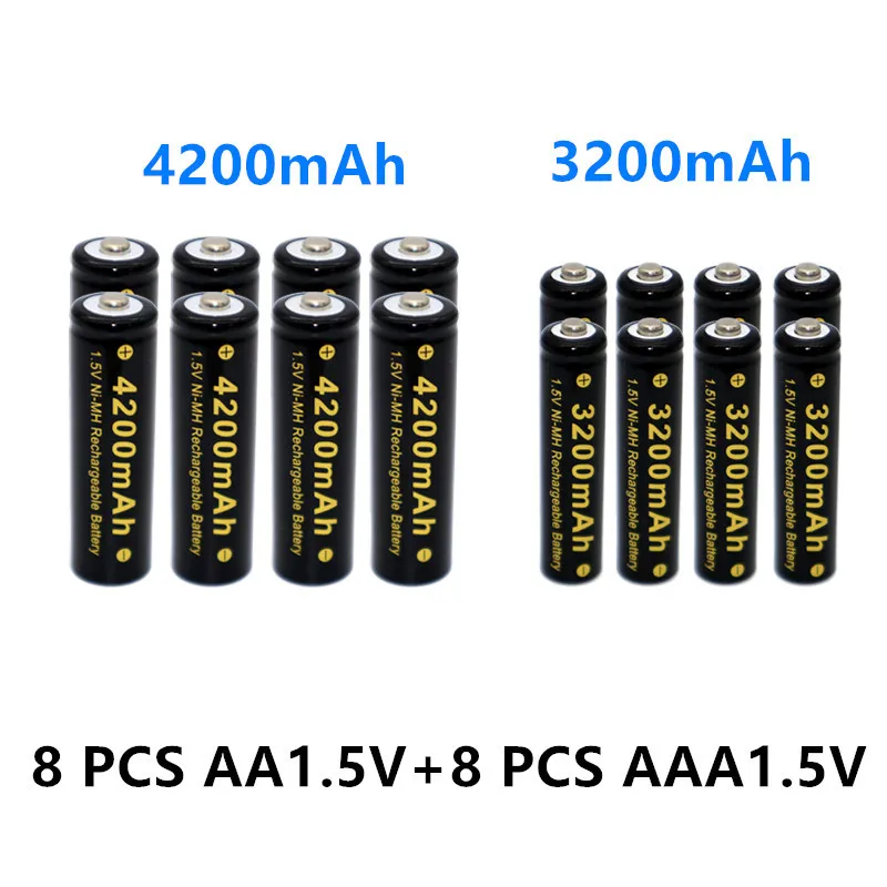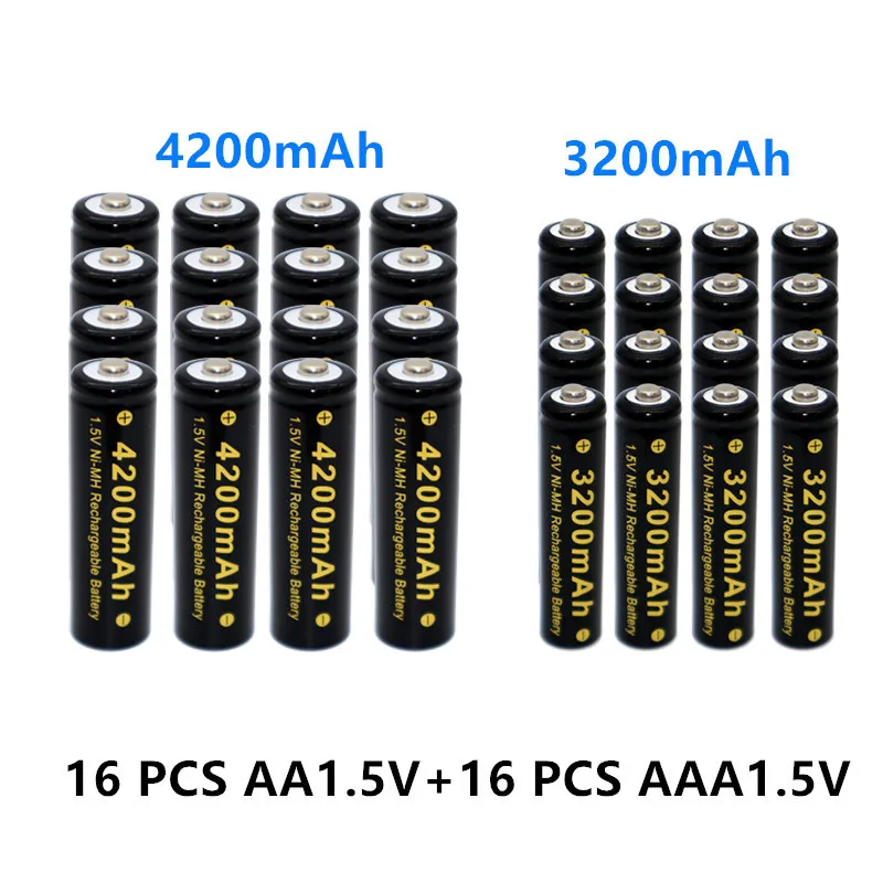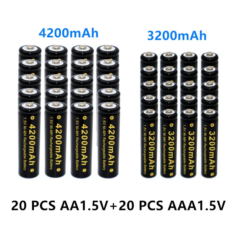 4-40 шт., перезаряжаемые батареи AAA + A Ni MH 1,5-42000 мАч