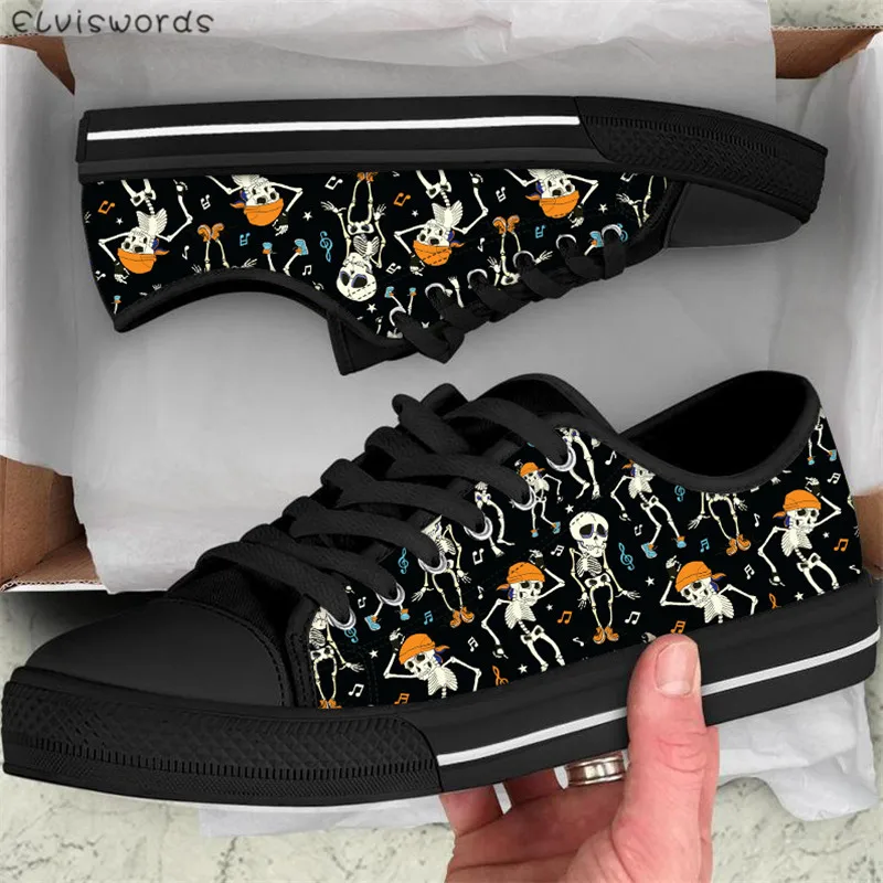 ELVISWORDS, танцующие скелетоны с принтом, повседневные женские туфли с низким верхом, удобные женские прогулочные туфли на шнуровке