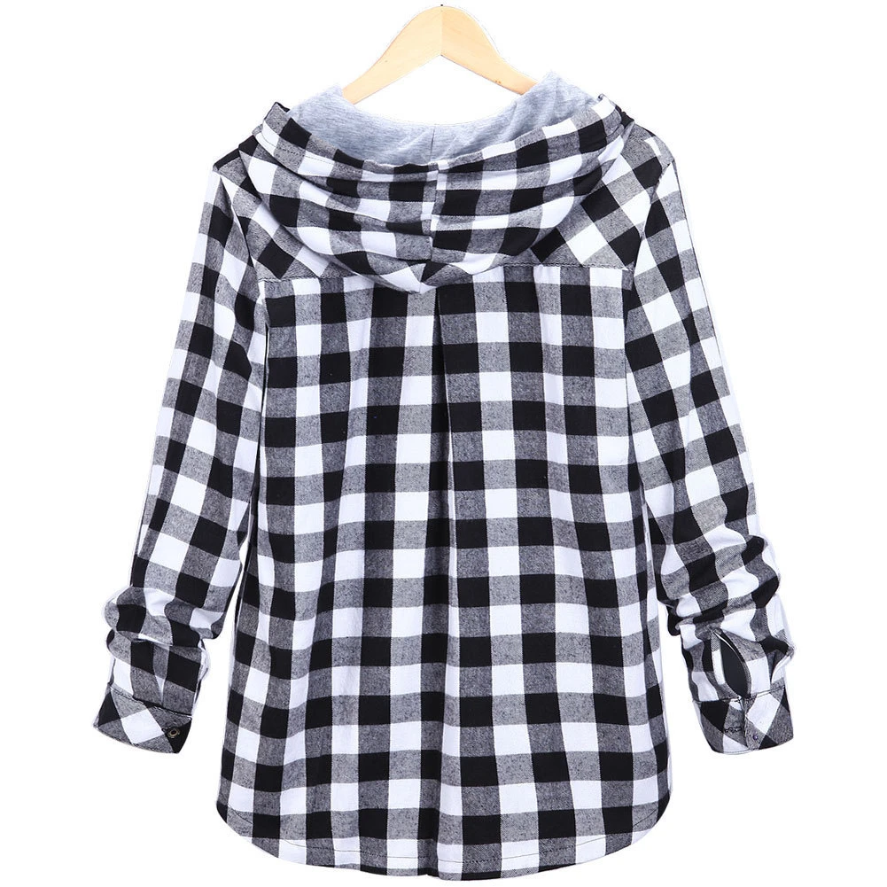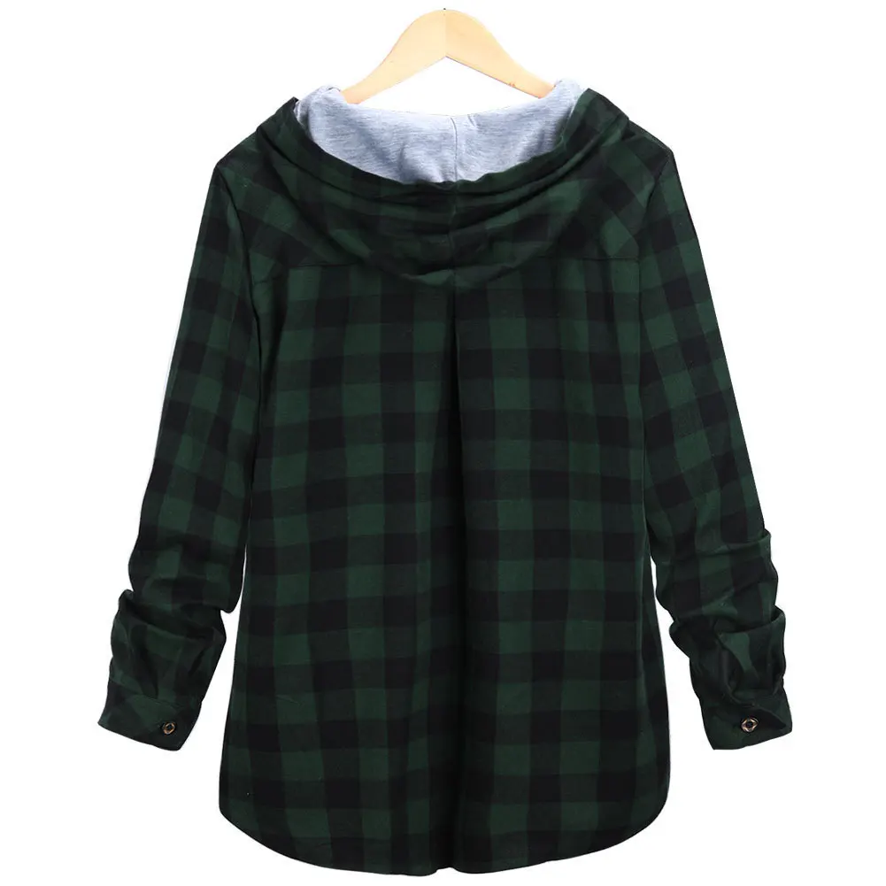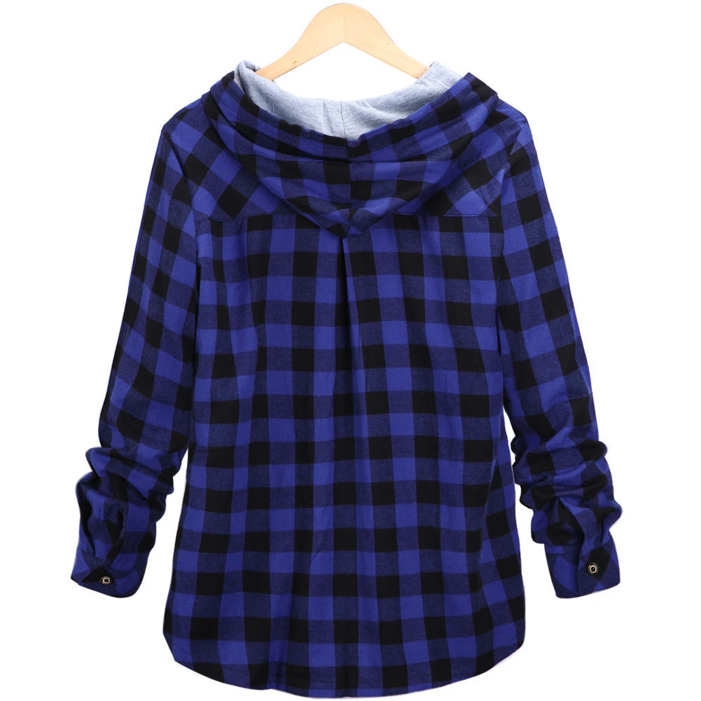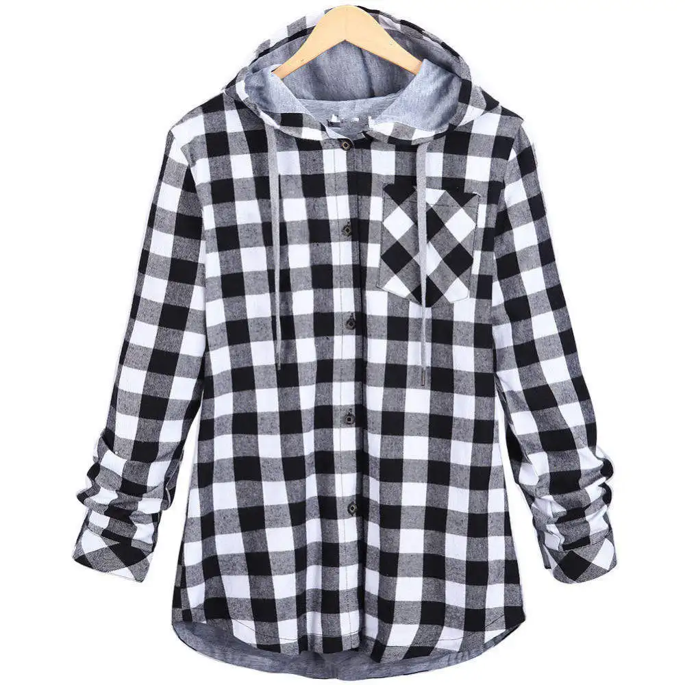 Женская клетчатая рубашка, Повседневная красная клетчатая рубашка с капюшоном и длинным рукавом, английская рубашка, топы для мужчин, Harajuku, черная клетчатая блузка, парная рубашка