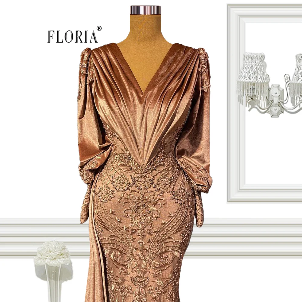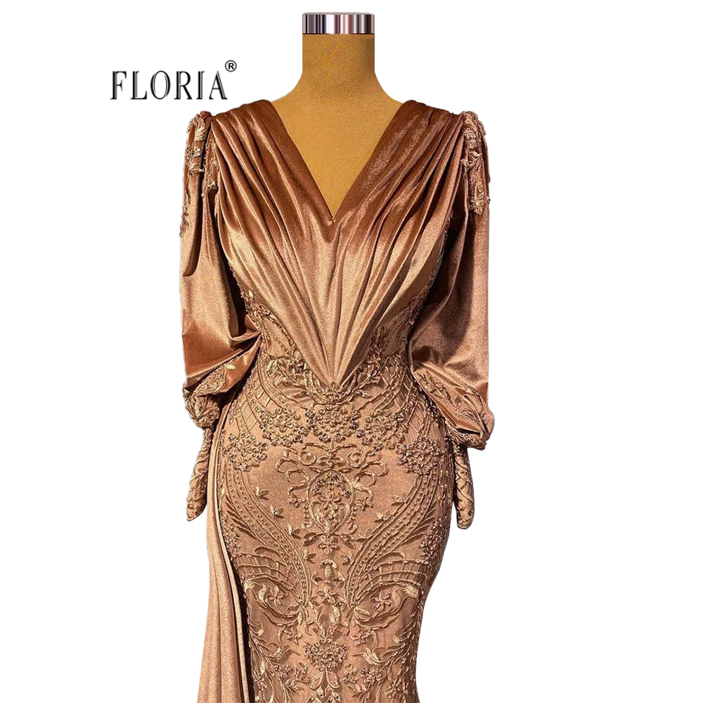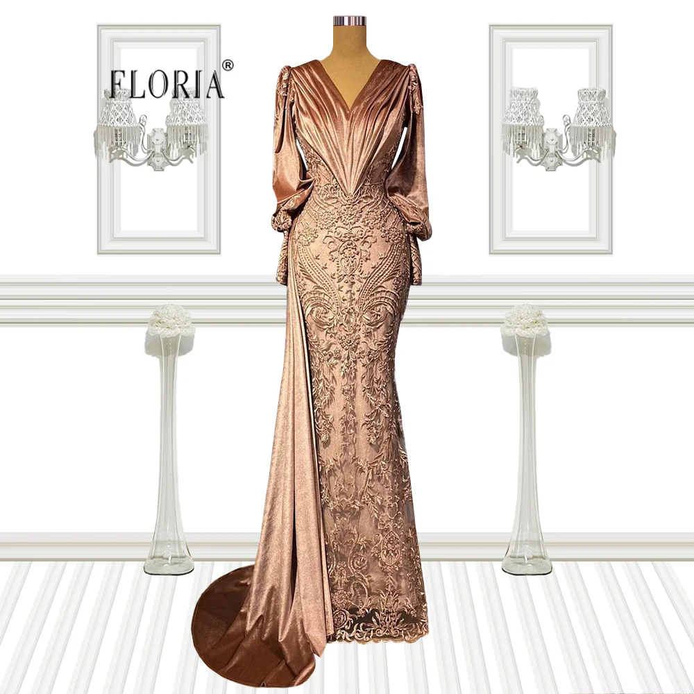 Светло-коричневое вечернее платье Floria с длинным рукавом и юбкой-годе 2022 женское длинное кружевное платье с V-образным вырезом для выпускного вечера vestido de размера плюс