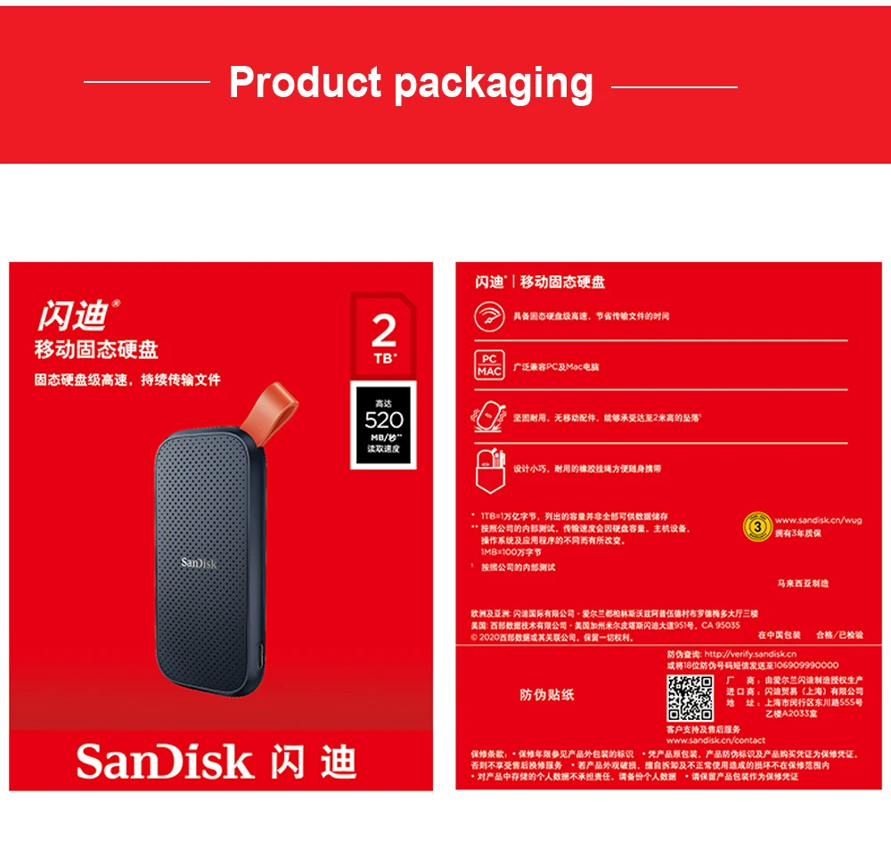 Внешний жесткий диск sandisk480 портативный PSSD 520 Гб 3,1 дюйма внешний жесткий диск USB Type-C 1 ТБ