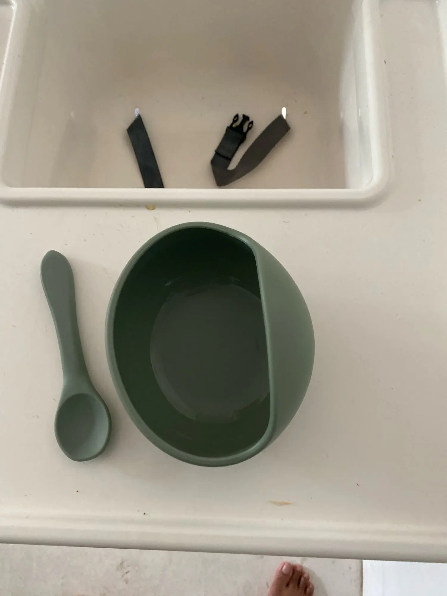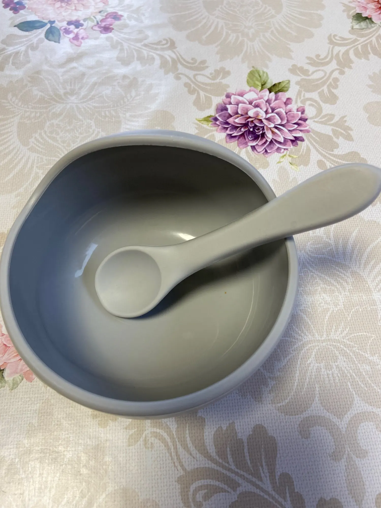 Очень очень довольна покупкой!! Мягкий силикон, красивый оттенок, отлично прилипает к детскому пластиковому столику! Ложка такая приятная что ребёнок иногда просто грызёт в качестве грызунка, но никаких следов на ней не остаётся!