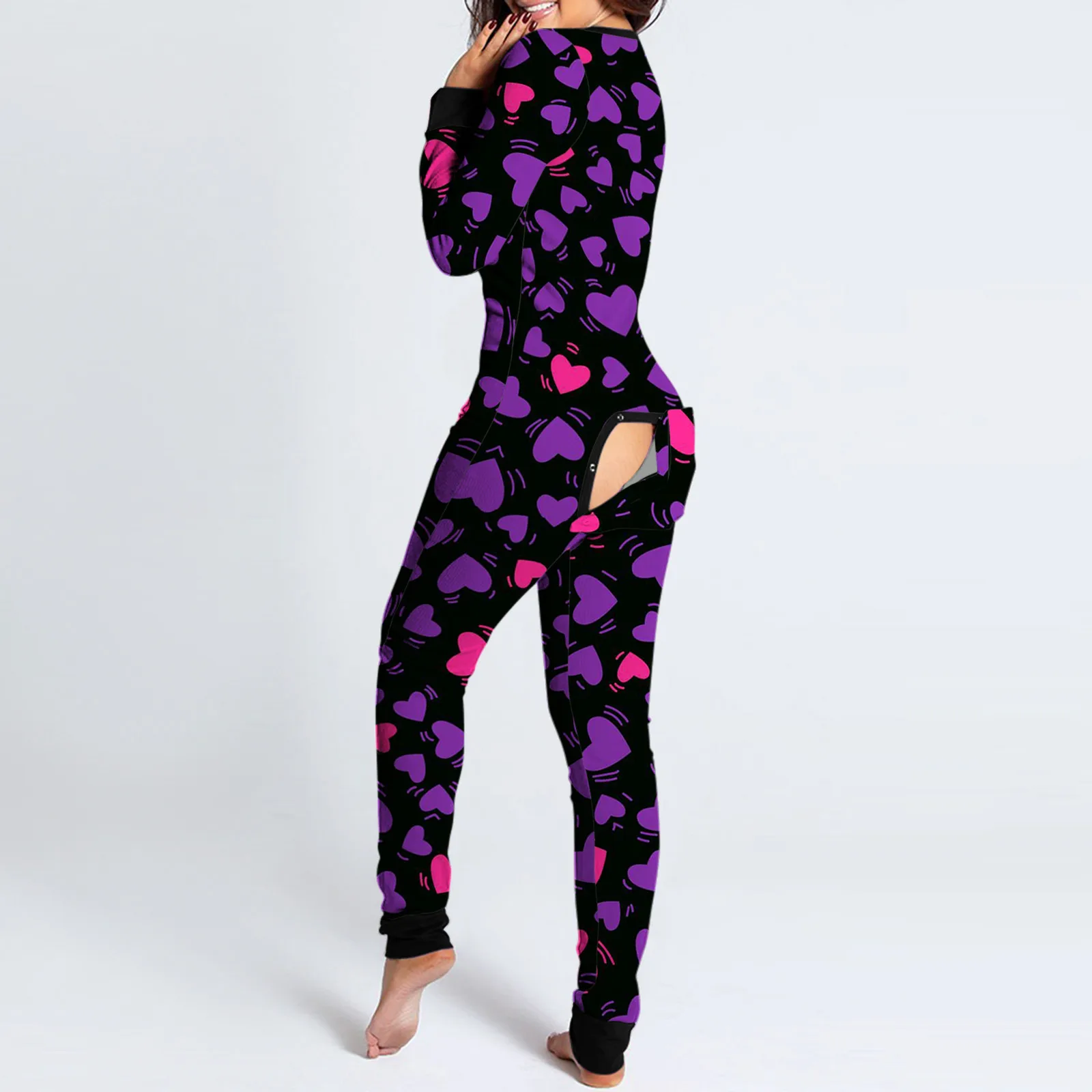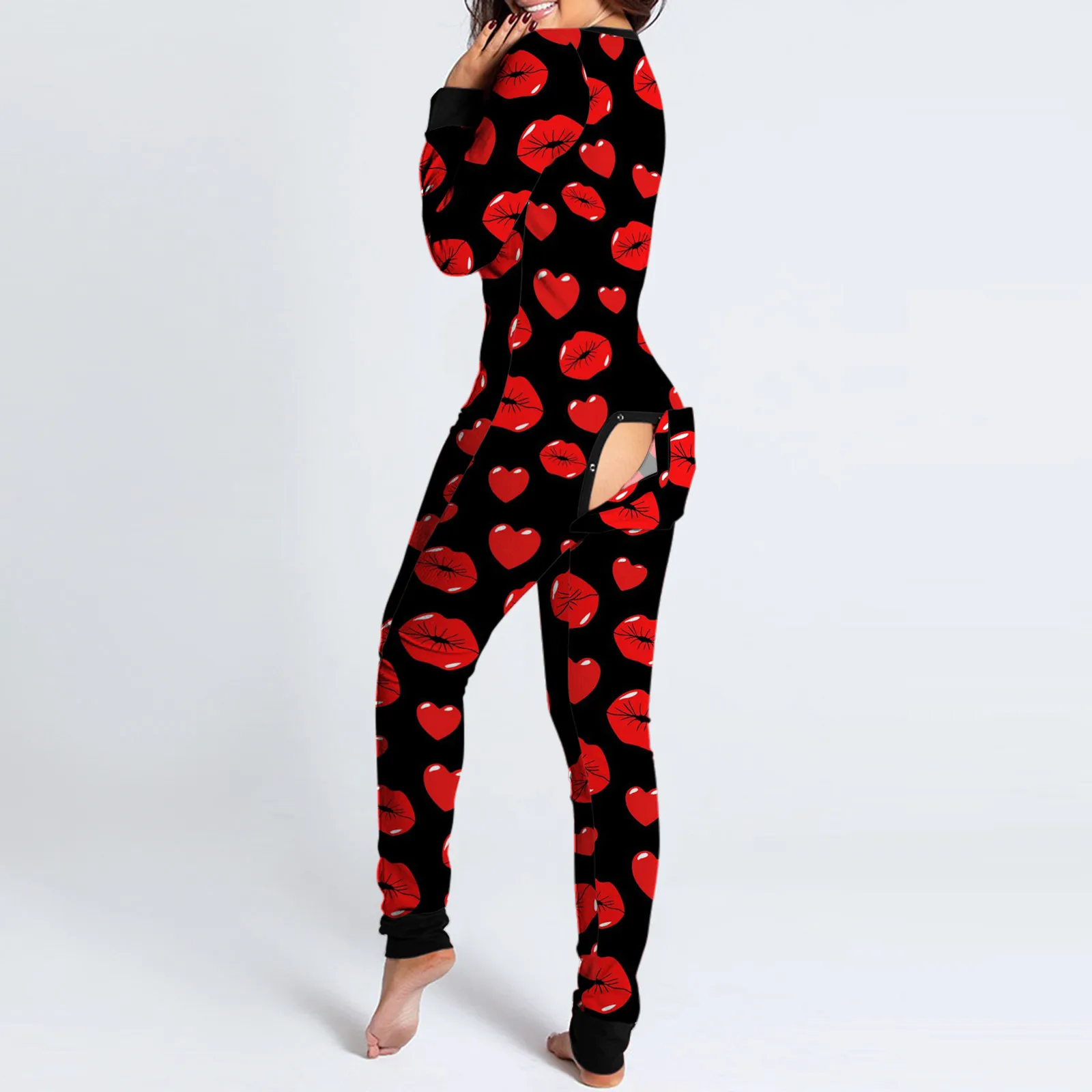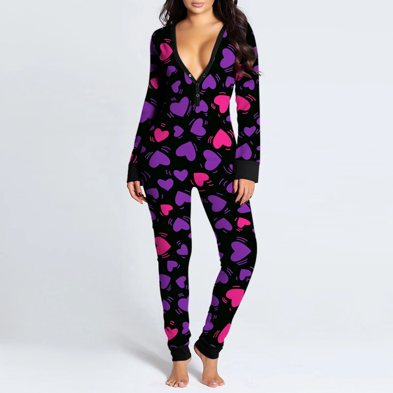 Пикантный комбинезон для взрослых на пуговицах, с длинным рукавом и V-образным вырезом