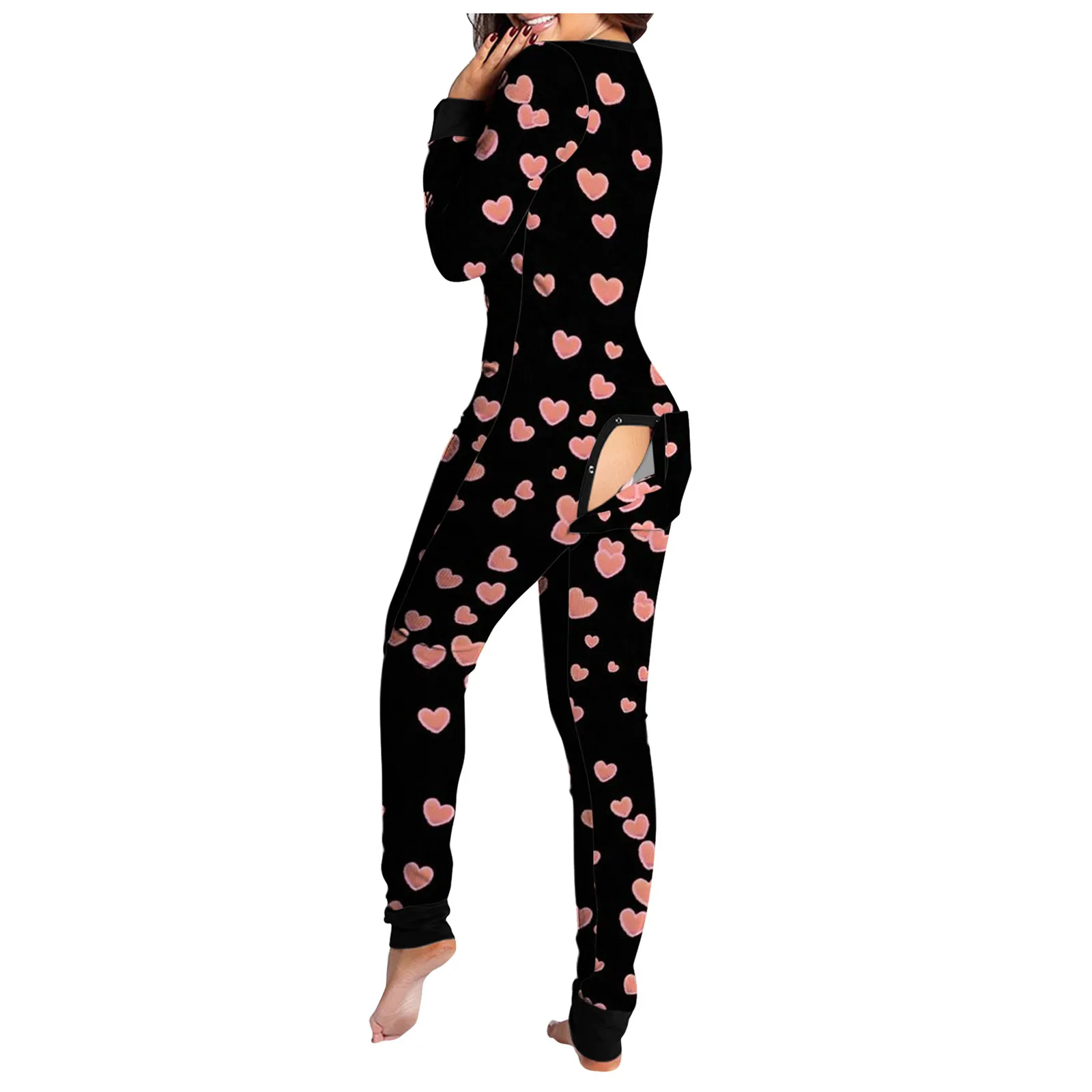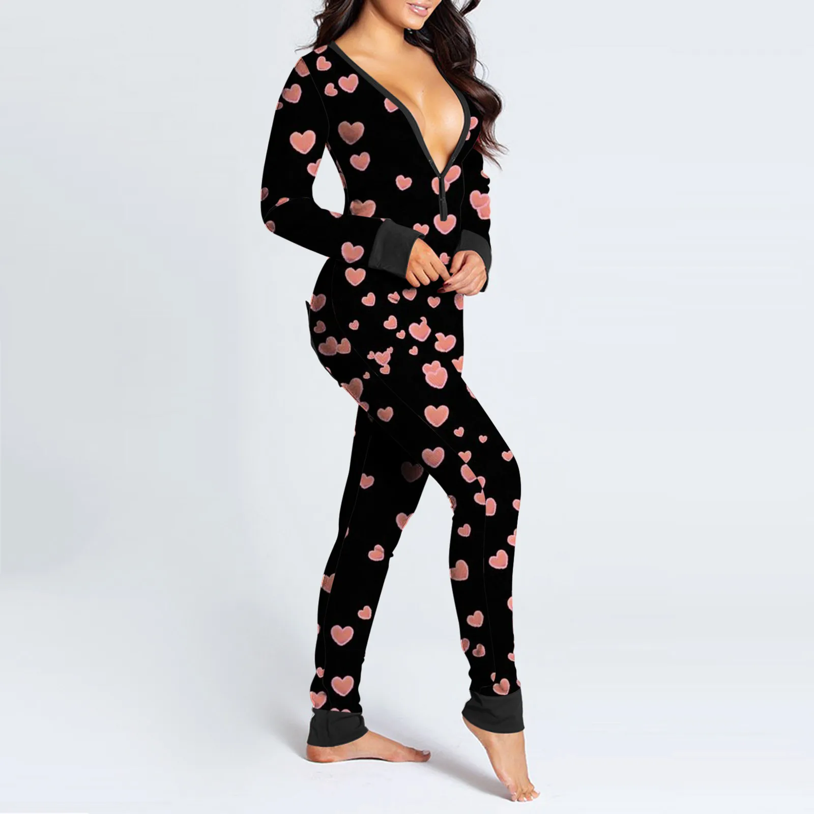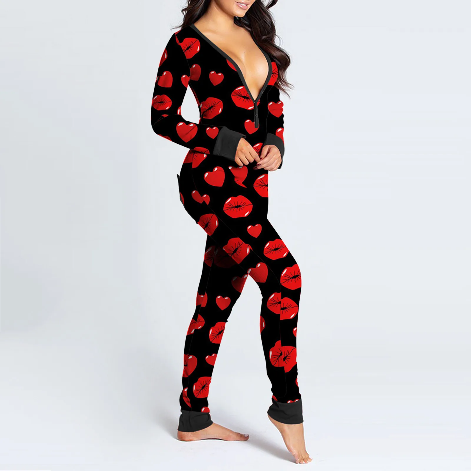 Пикантный комбинезон для взрослых на пуговицах, с длинным рукавом и V-образным вырезом