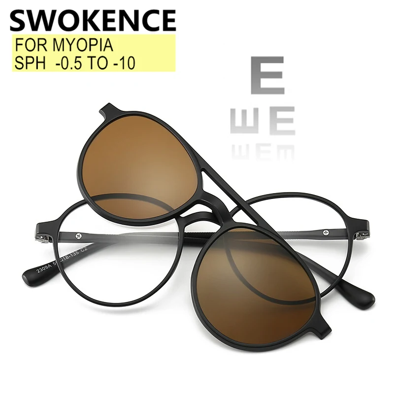 Очки для близорукости от-0,5 до-10 и магнитные солнцезащитные очки, круглой оправой очки с диоптриями минус, настраиваемый миопии и астигматизм F545
