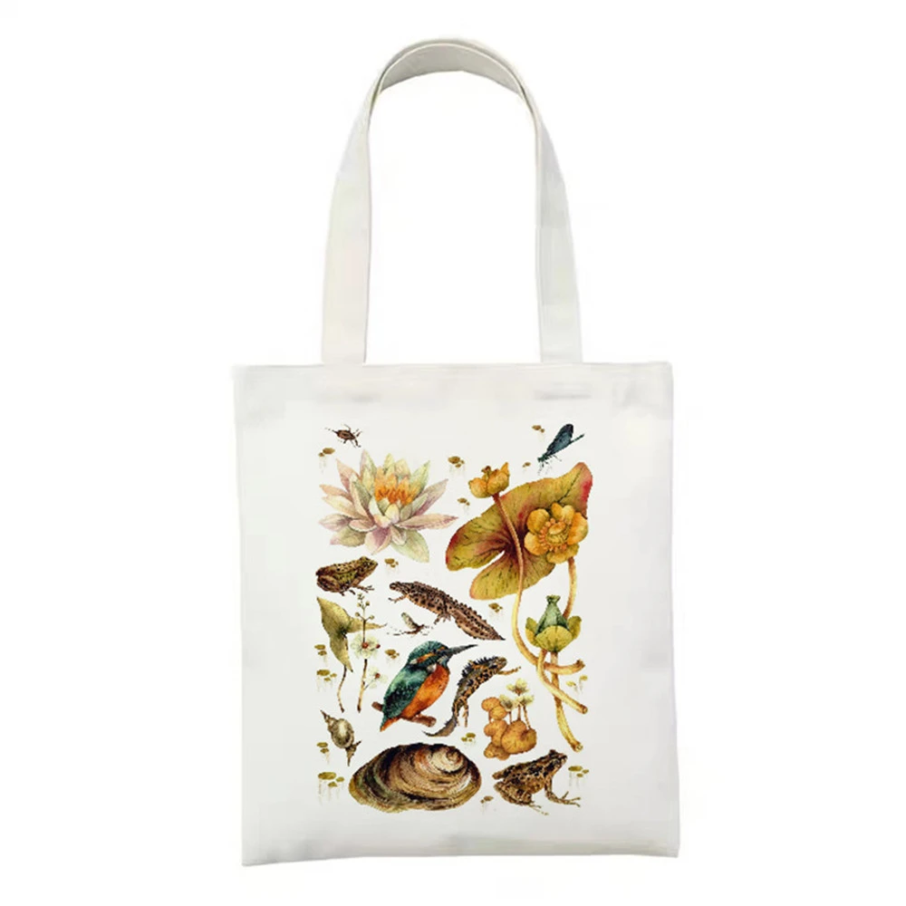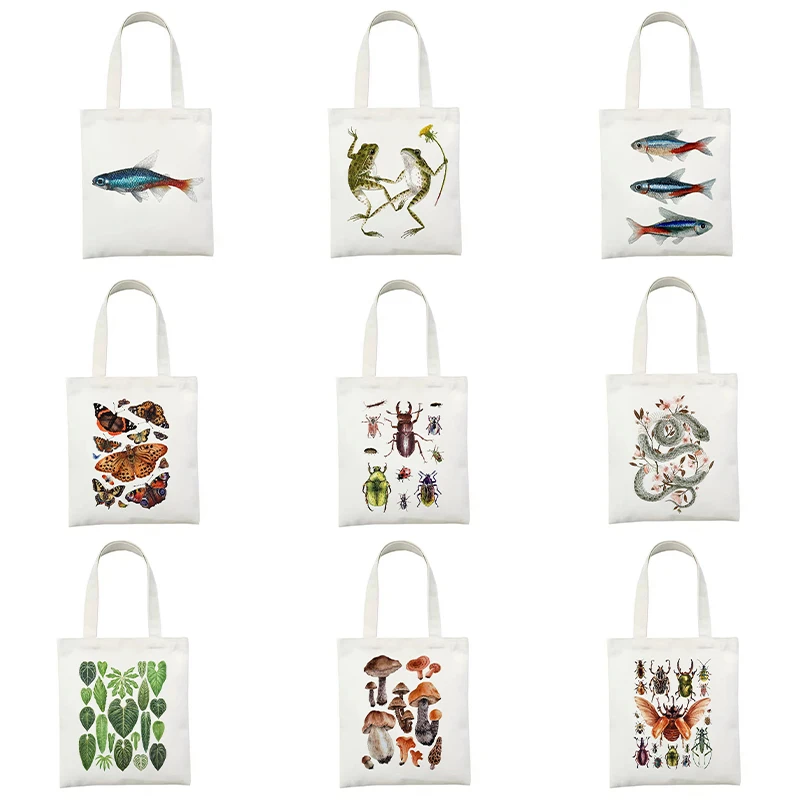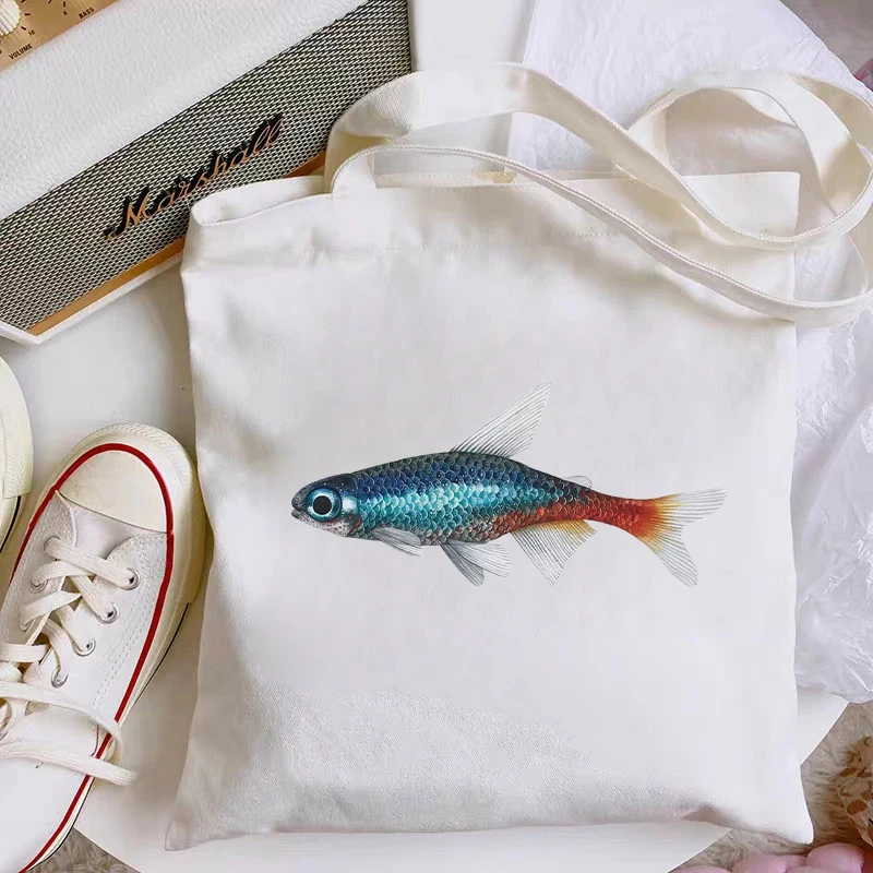 Женские холщовые сумки с рыбками и животными, вместительная сумка-тоут в стиле Харадзюку, женская сумка для покупок, женская сумка на плечо