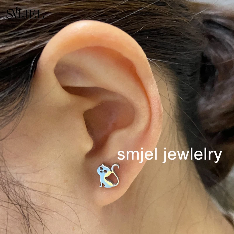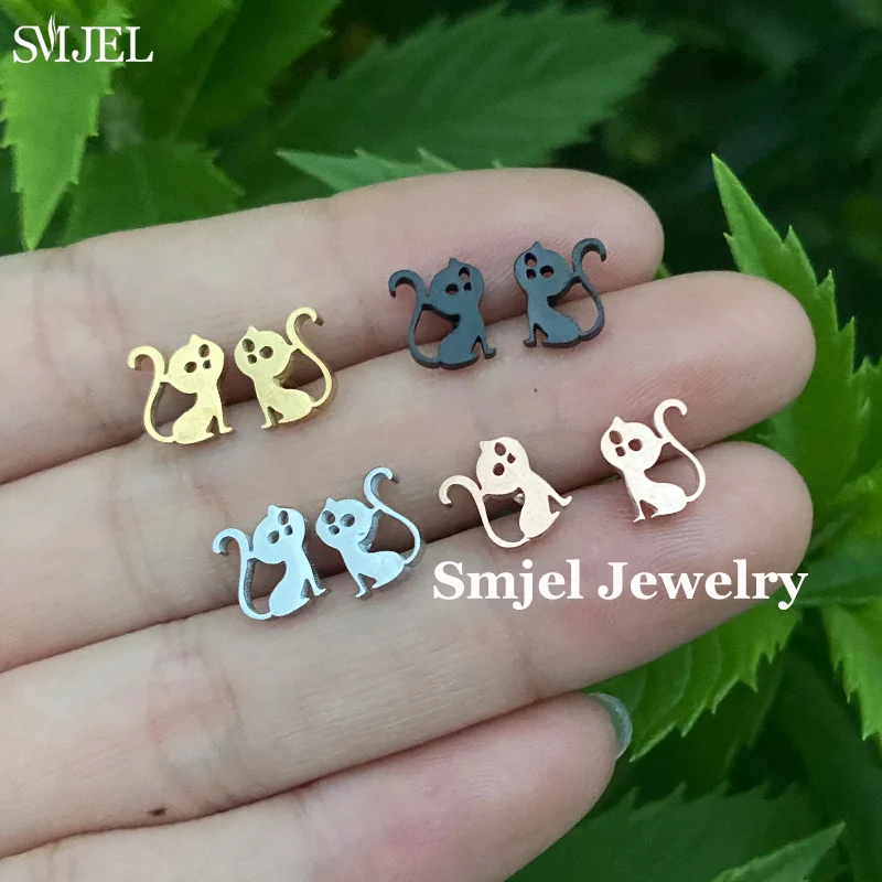 Милые кошачьи серьги из нержавеющей стали в Корейском стиле для женщин маленькая котята с длинным хвостом серьги-гвоздики в форме лапы модные украшения для детей Подарки