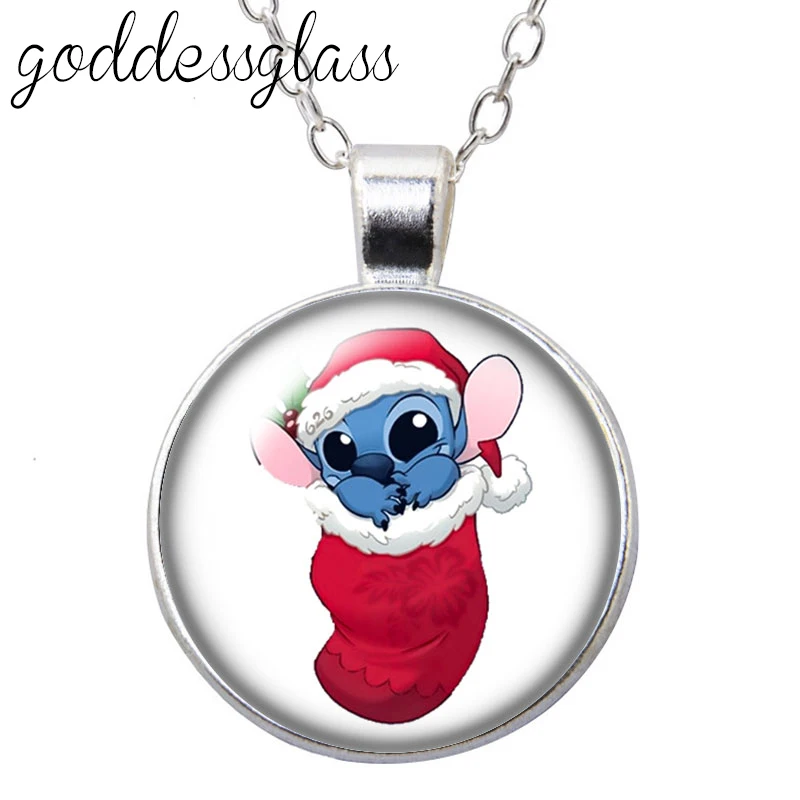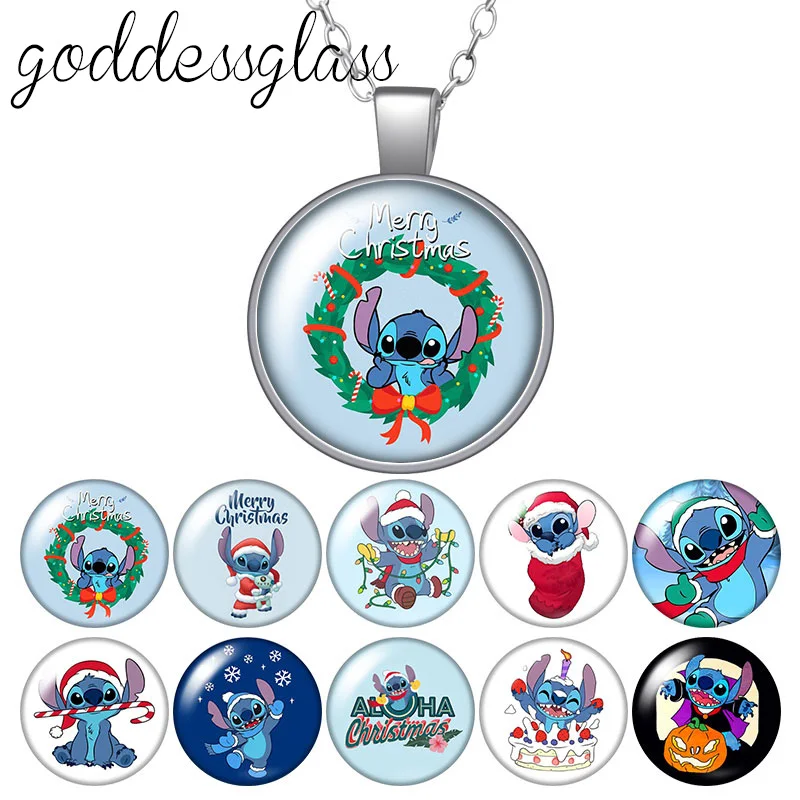 Disney милый Лило и Стич ангел круглый стеклянный кабошон посеребре...