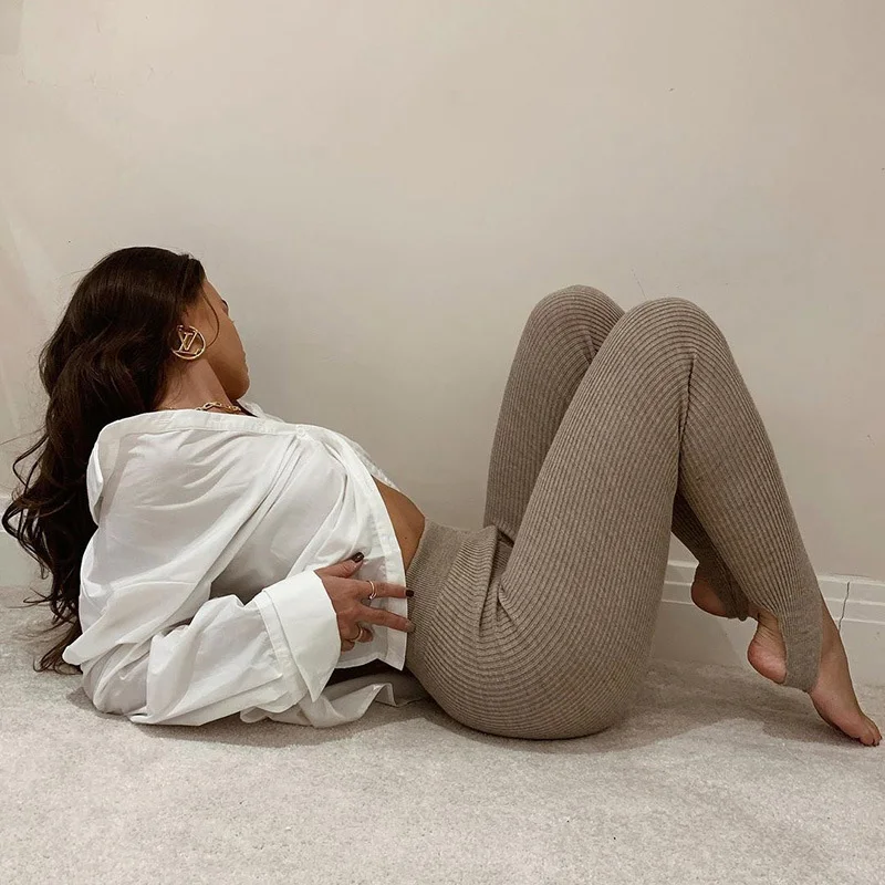Осенние повседневные однотонные трикотажные леггинсы в рубчик, женские Сексуальные облегающие спортивные брюки, зимние элегантные женские брюки с высокой талией, домашняя одежда