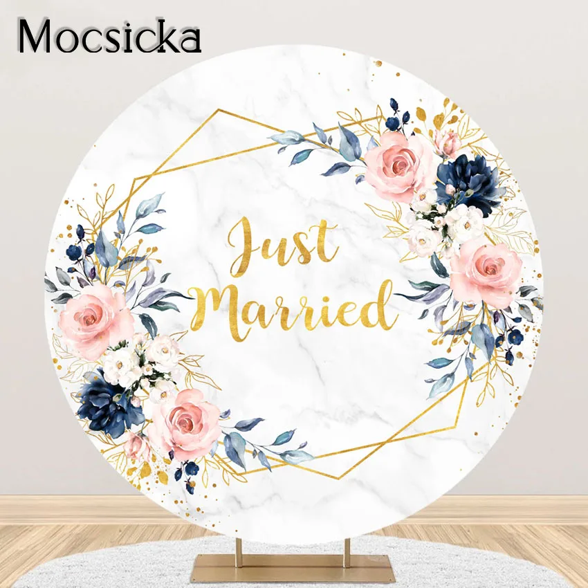 Mocsicka фон для свадебной фотосъемки с изображением темно-синих и золотых румян для свадебной вечеринки круглая Обложка для фотосъемки