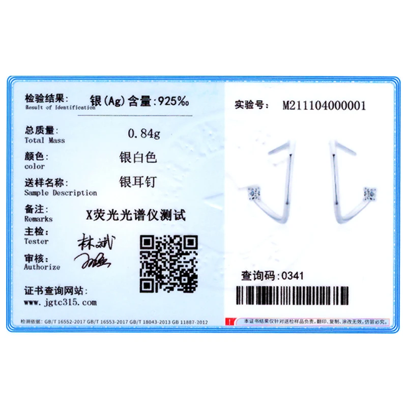 Женские серьги-гвоздики из серебра 100% пробы с фианитом