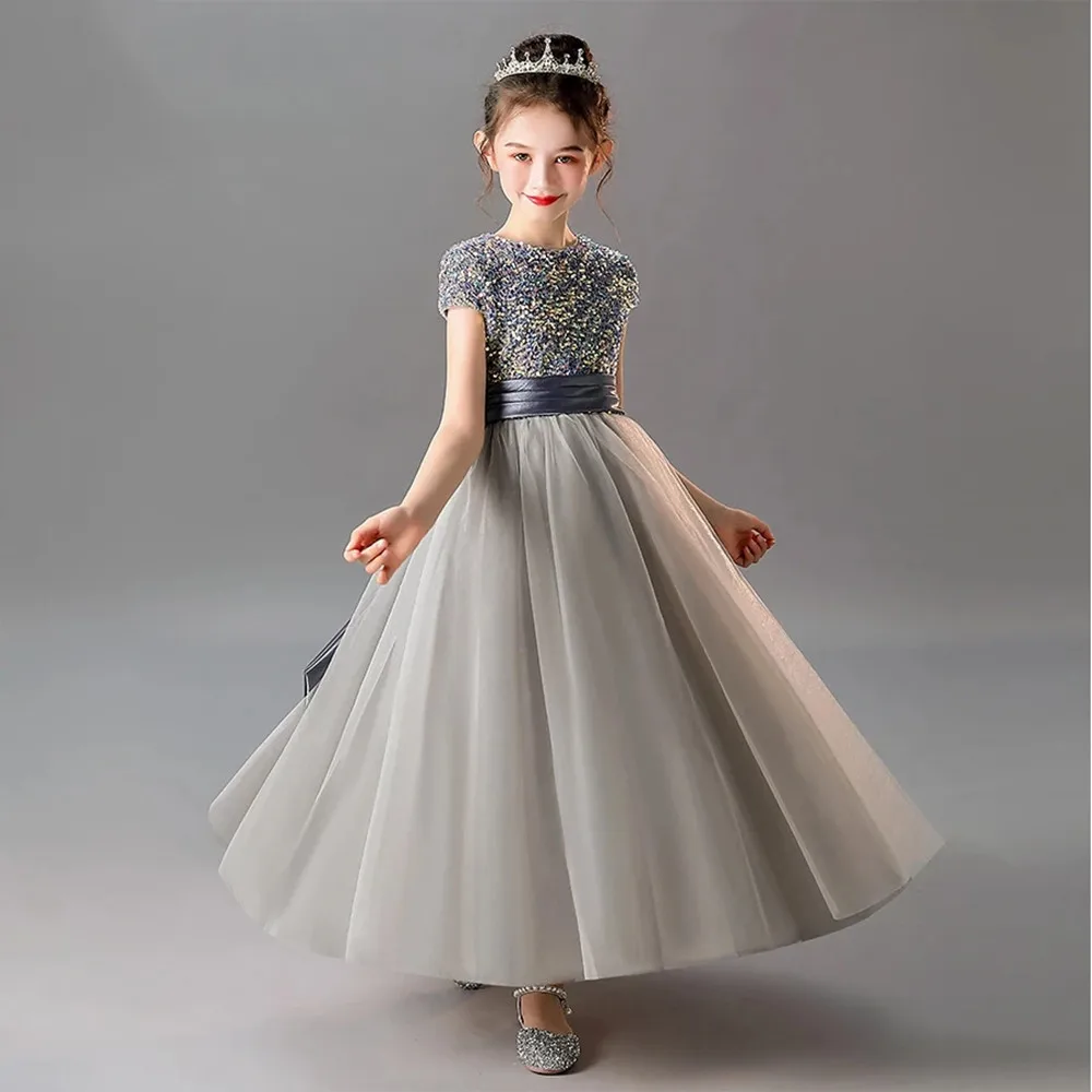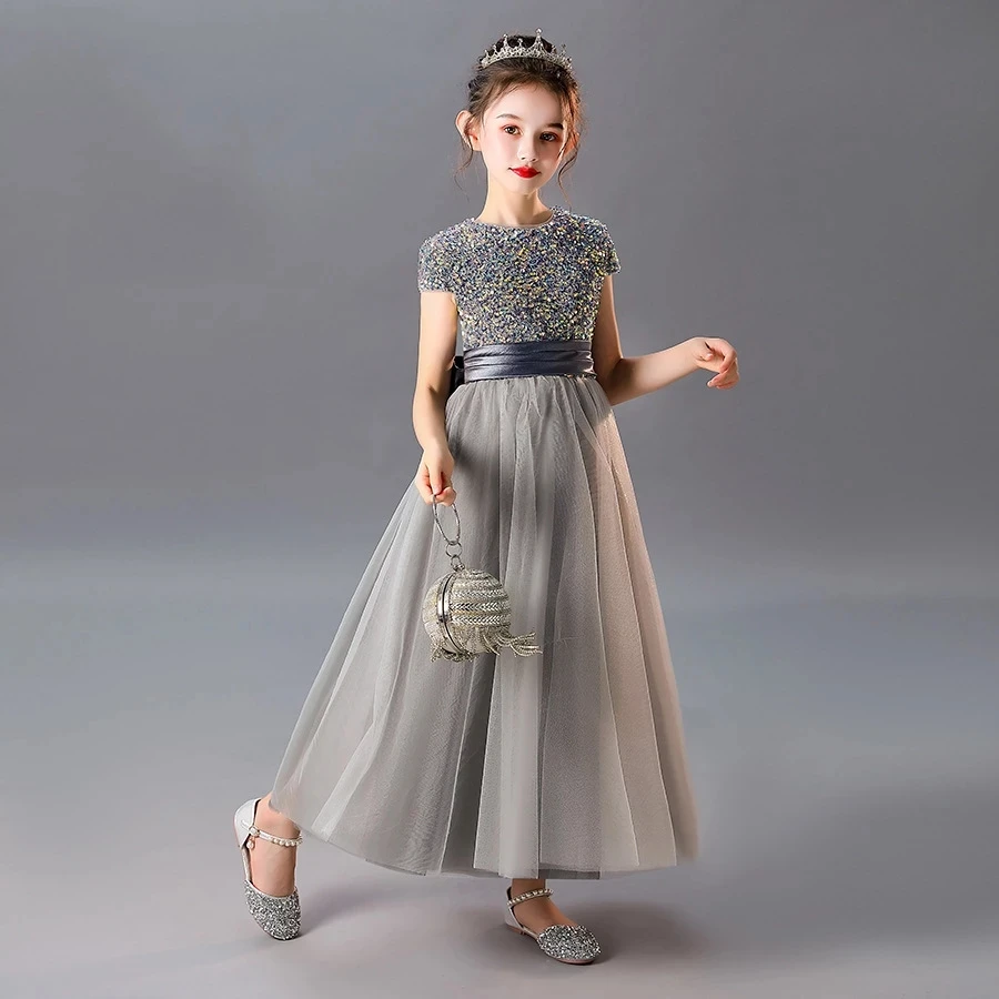 Новые блестящие серебряные бальное платье с блестками для девочек, ...